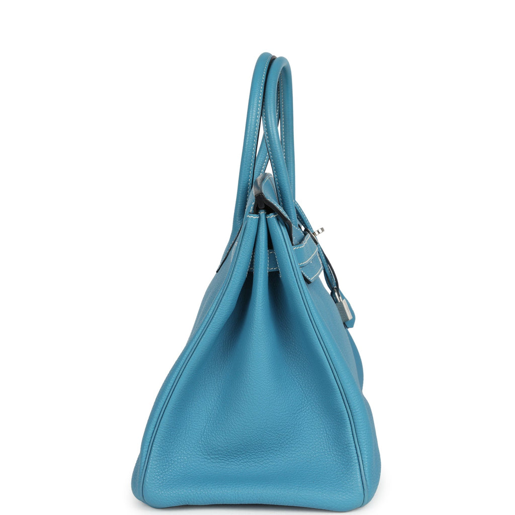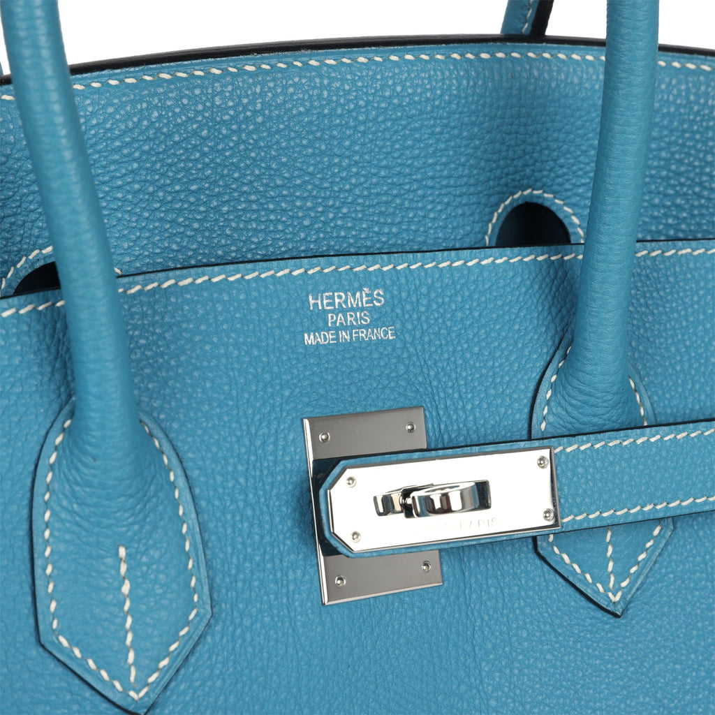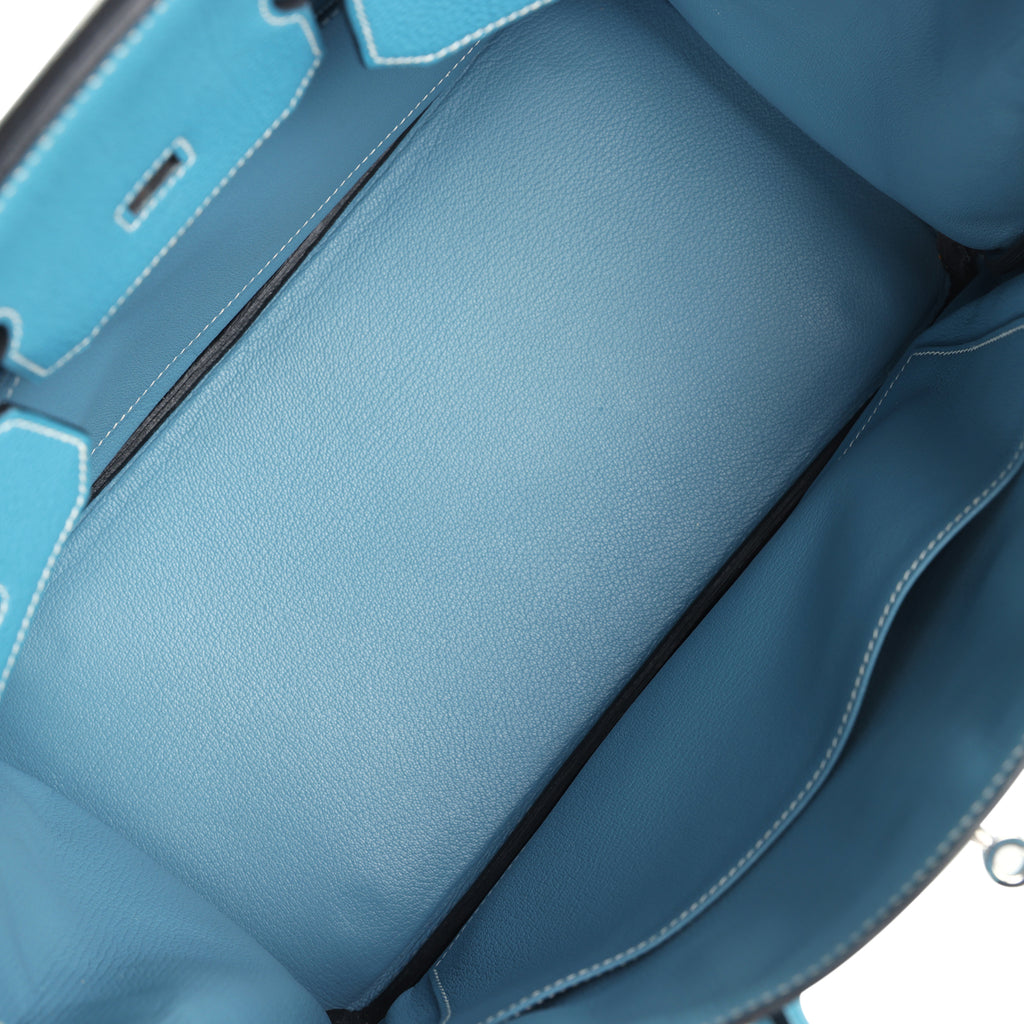 Pre-owned Hermes Birkin 35 Blue Jean Togo Palladium Hardware