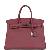 Pre-owned Hermes Birkin 35 Bois De Rose Fjord Palladium Hardware
