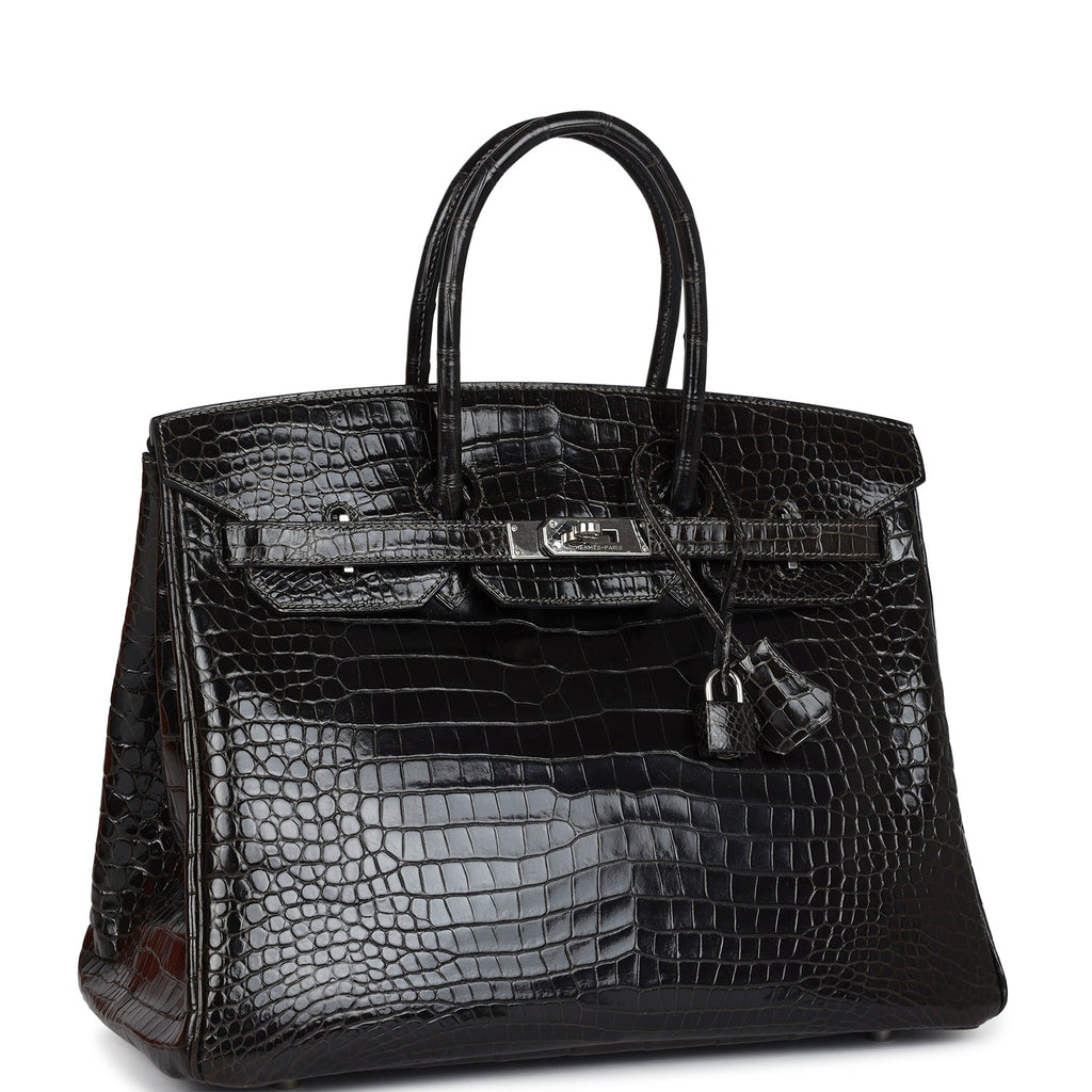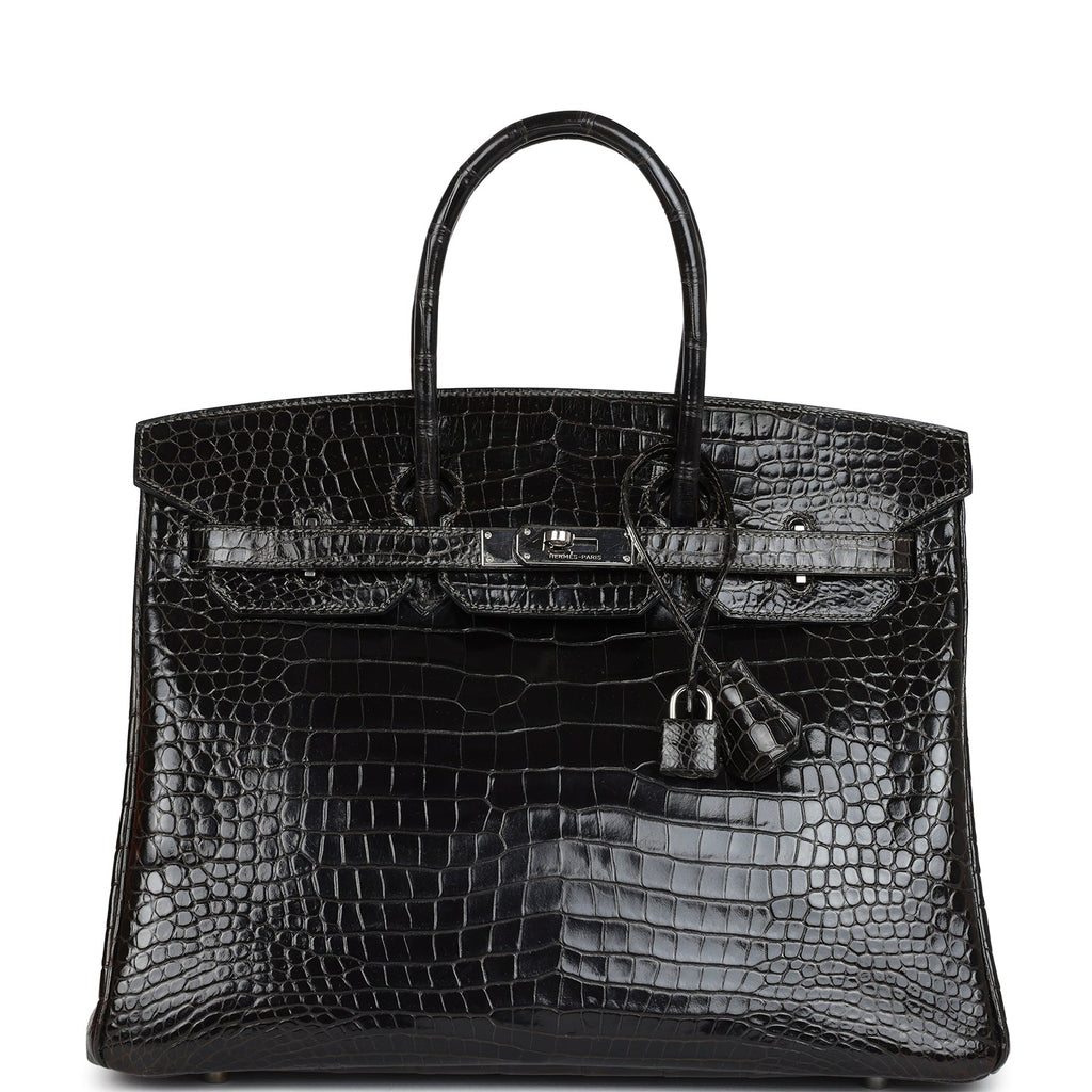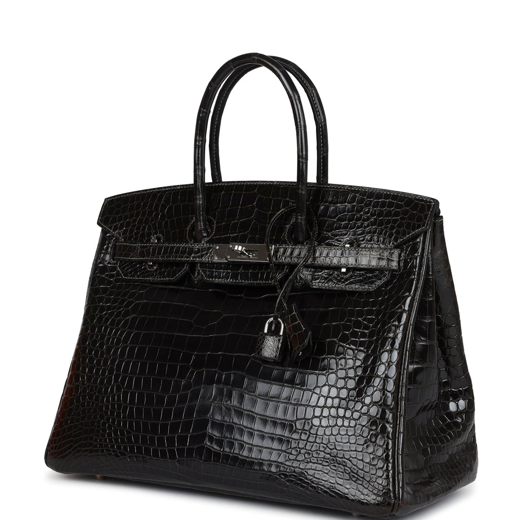 Pre-owned Hermes Birkin 35 Graphite Shiny Porosus Crocodile Palladium Hardware