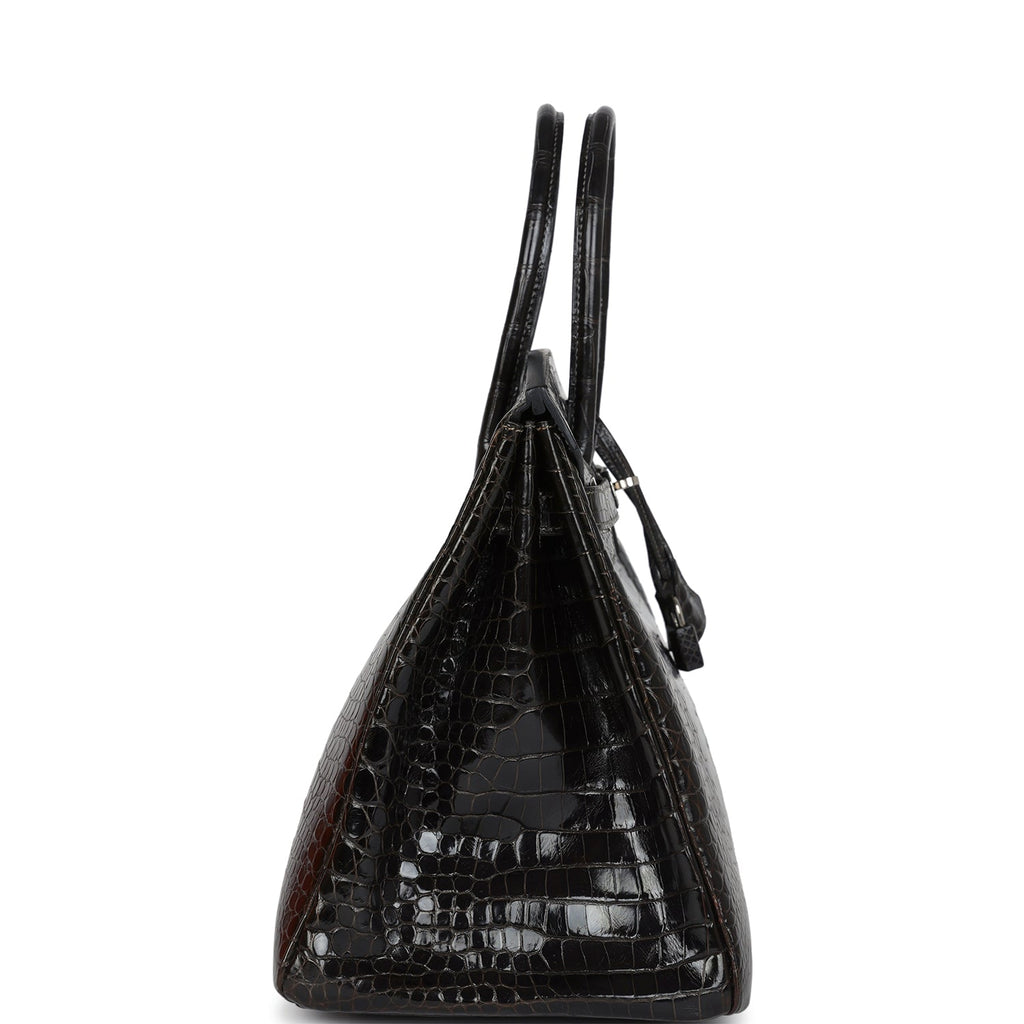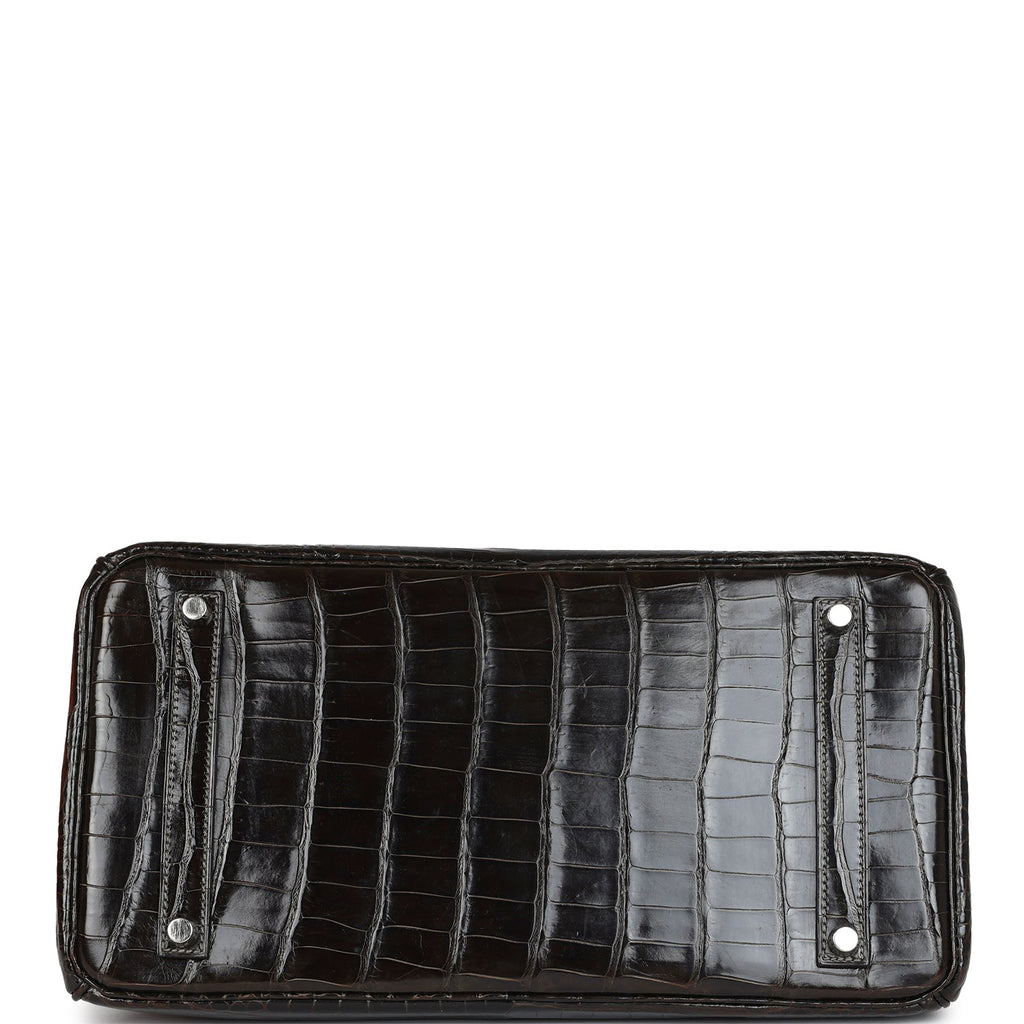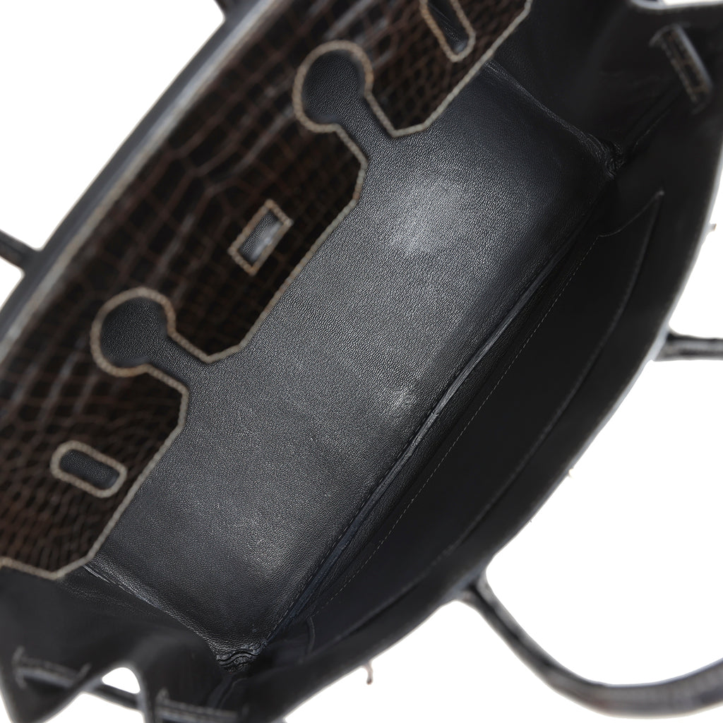 Pre-owned Hermes Birkin 35 Graphite Shiny Porosus Crocodile Palladium Hardware