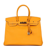 Pre-owned Hermes Birkin 35 Jaune D'or Candy Epsom Palladium Hardware