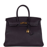 Pre-owned Hermes Birkin 35 Raisin Clemence Gold Hardware