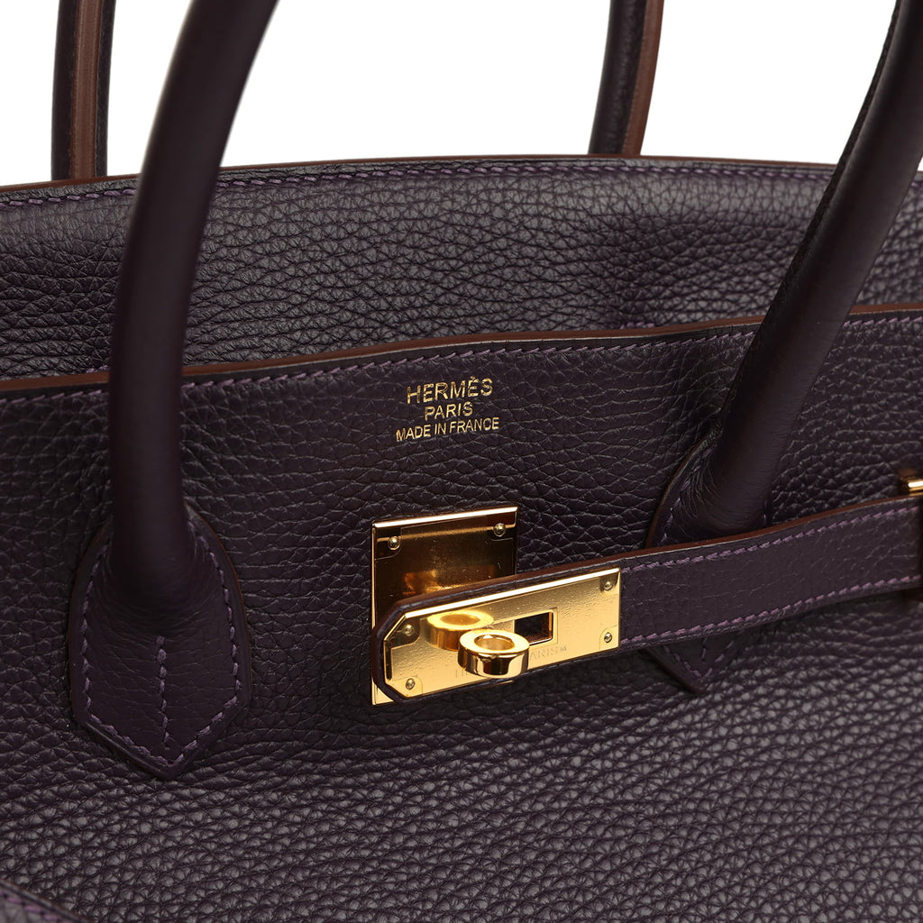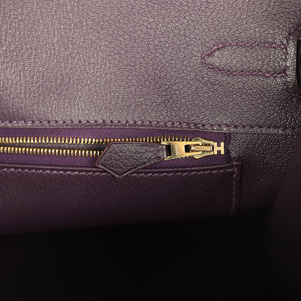 Pre-owned Hermes Birkin 35 Raisin Clemence Gold Hardware