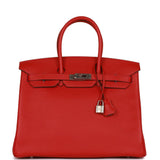 Hermes Birkin 35 Rouge Casaque Clemence Palladium Hardware