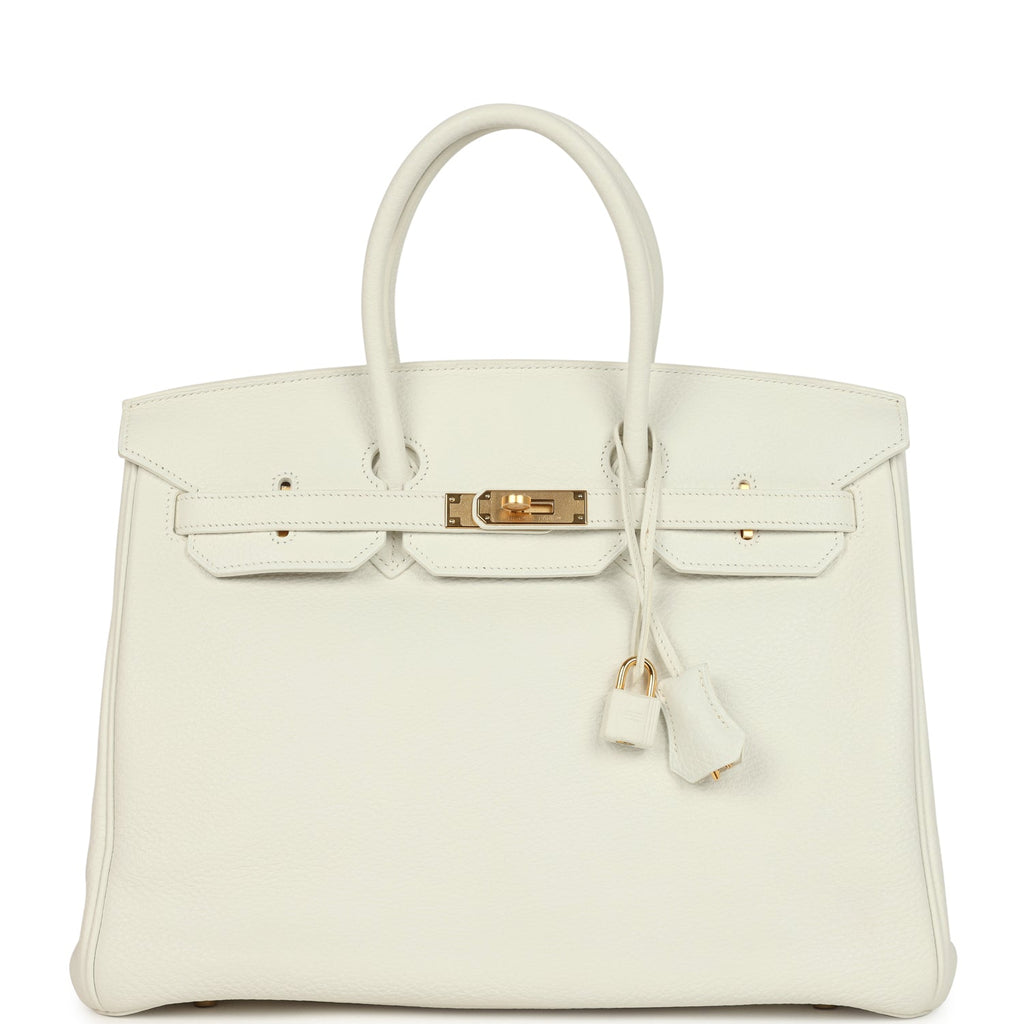 Pre-owned Hermes Birkin 35 White Clemence Gold Hardware