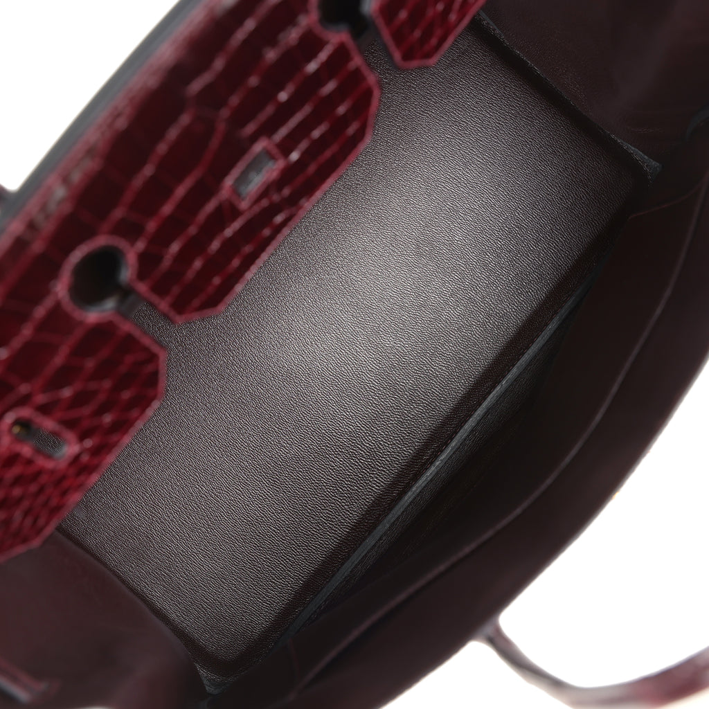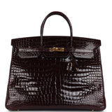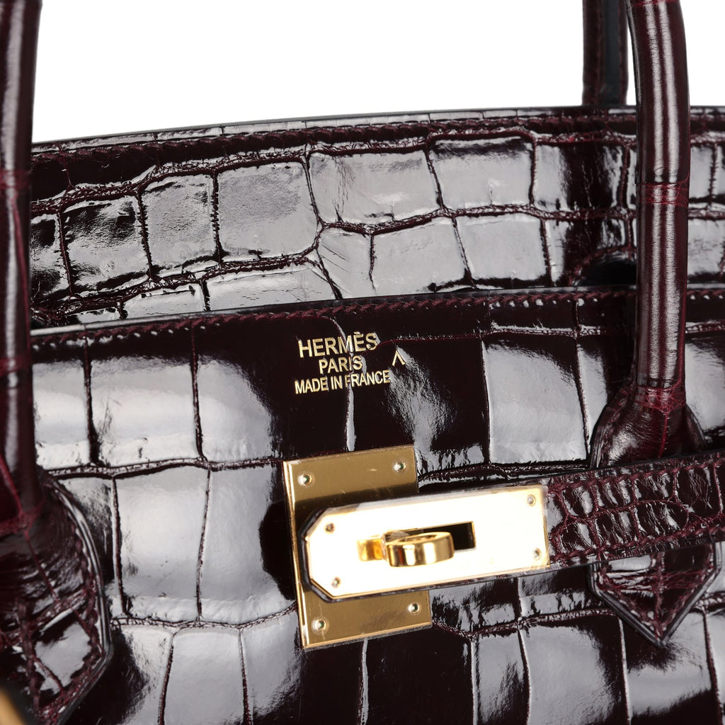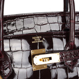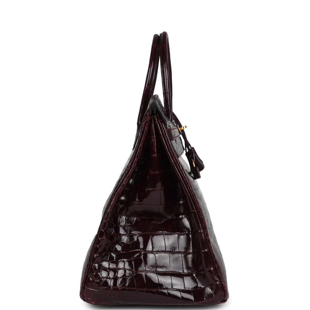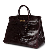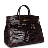 Pre-owned Hermes Birkin 40 Bordeaux Shiny Porosus Crocodile Gold Hardware