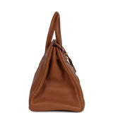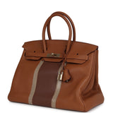 Pre-owned Hermes Birkin Club 35 Gold and Marron d'Inde Clemence and Ficelle Lizard Permabrass Hardware