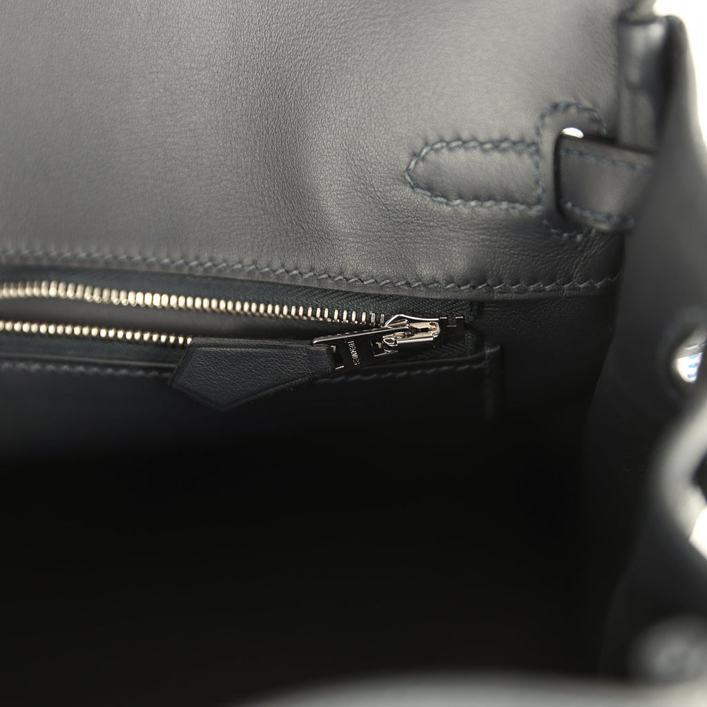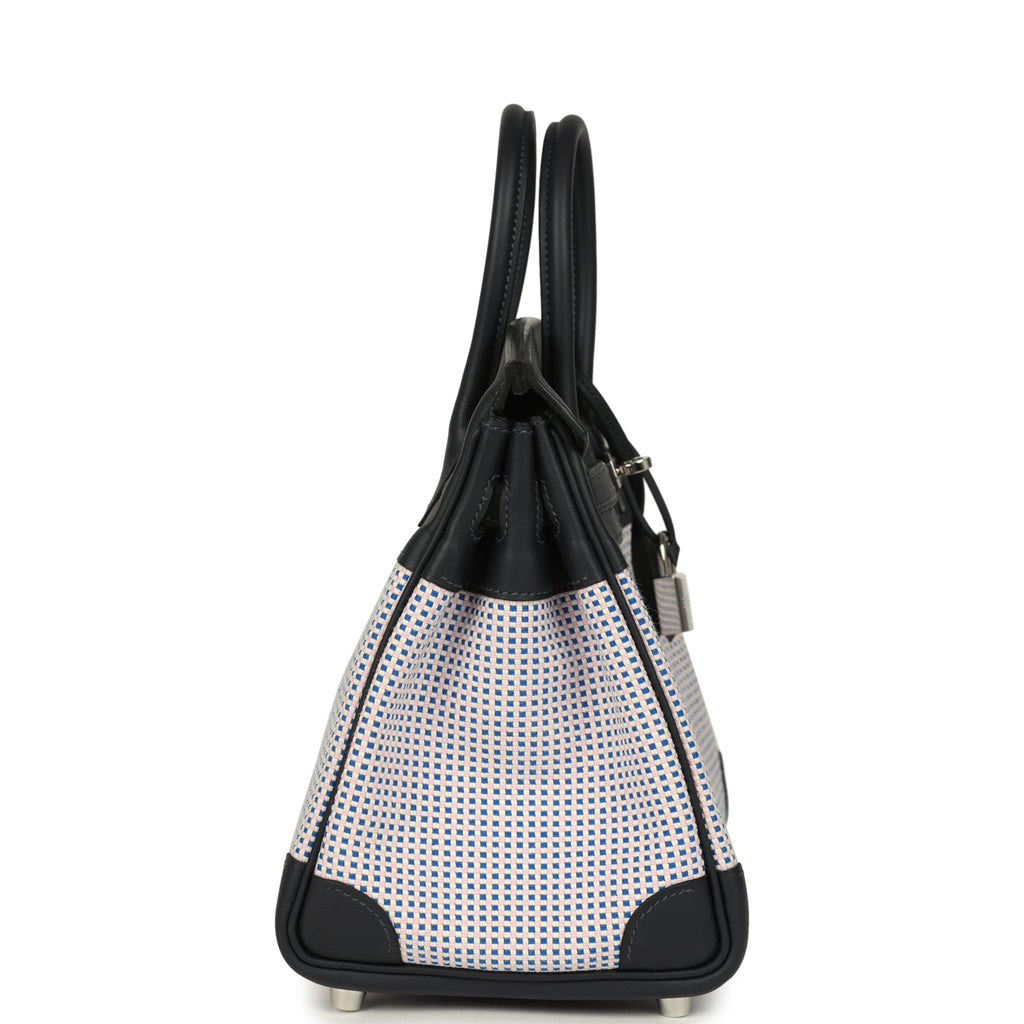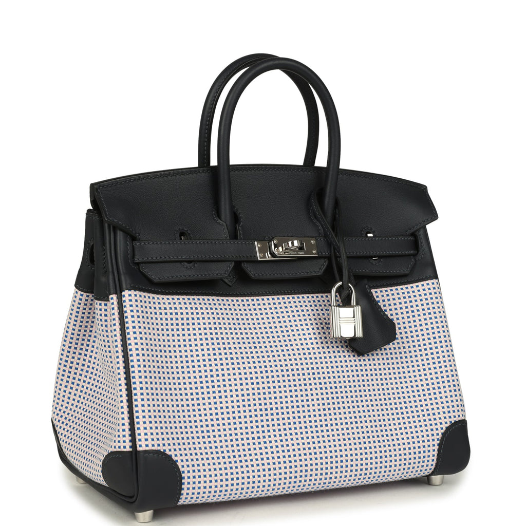 Pre-owned Hermes Birkin Quadrille 25 Caban Swift and Toile Palladium Hardware