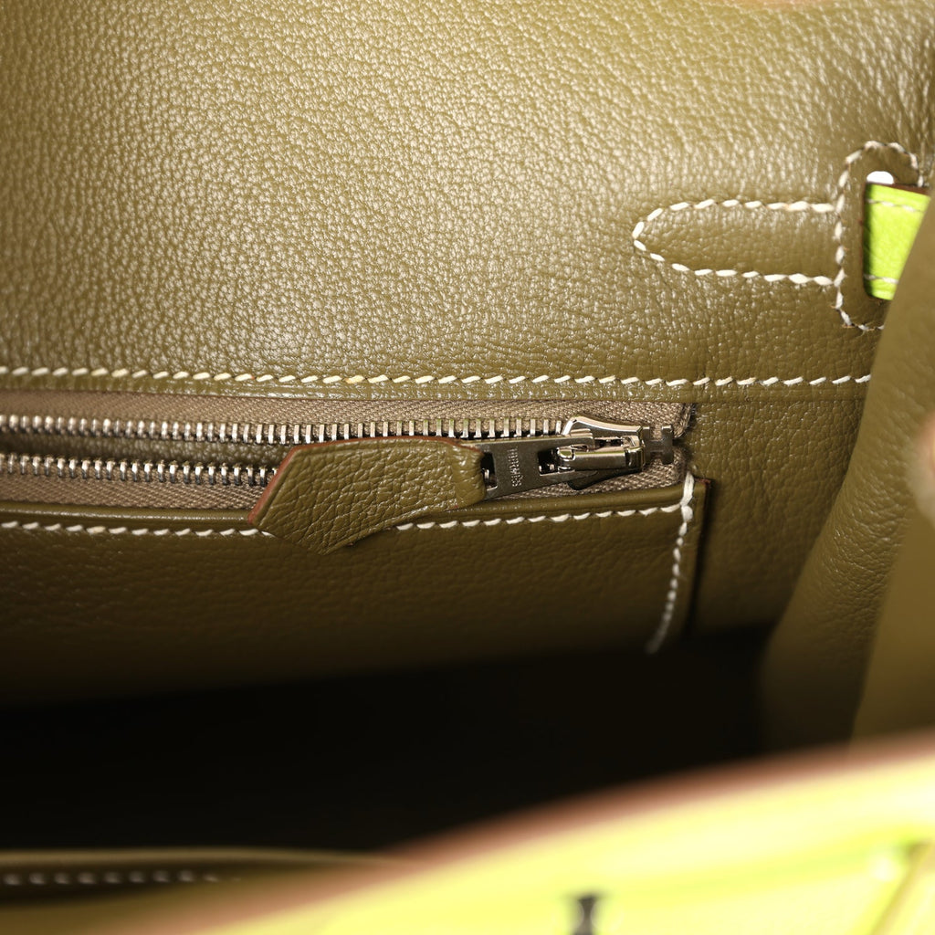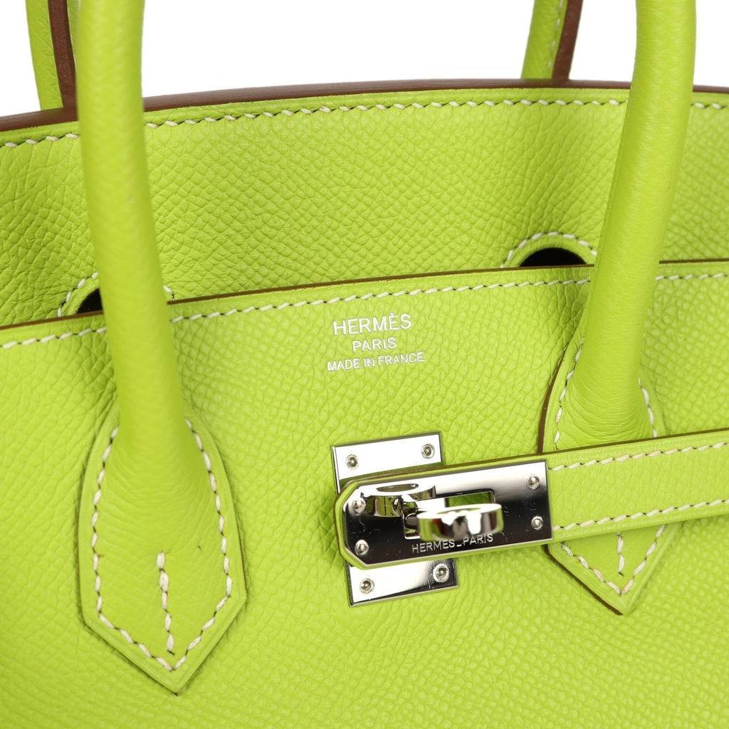 Pre-owned Hermes Candy Birkin 25 Kiwi Candy Epsom Palladium Hardware