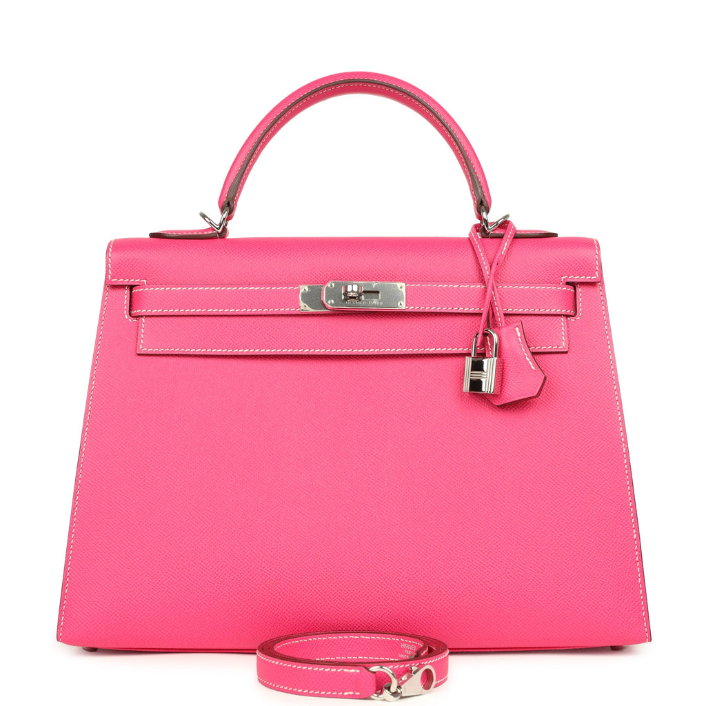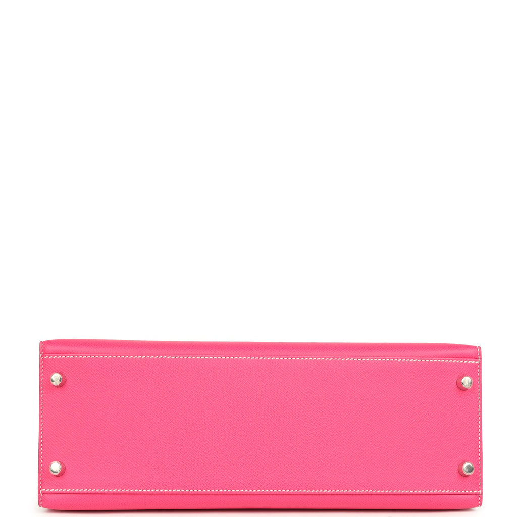 Pre-owned Hermes Candy Kelly Sellier 32 Rose Tyrien Epsom Palladium Hardware