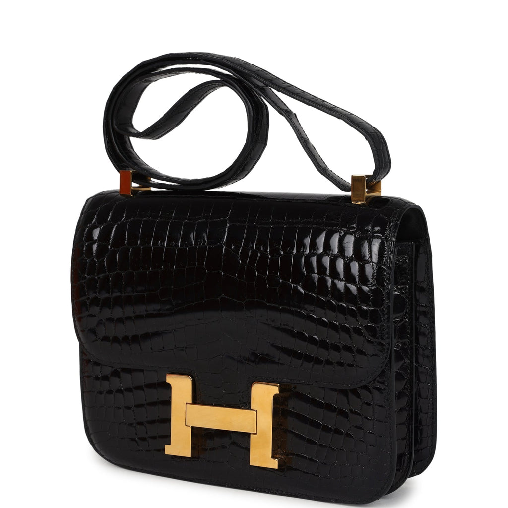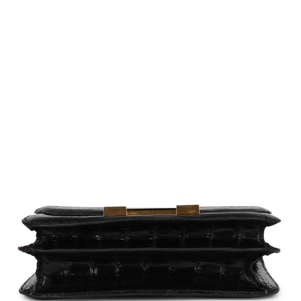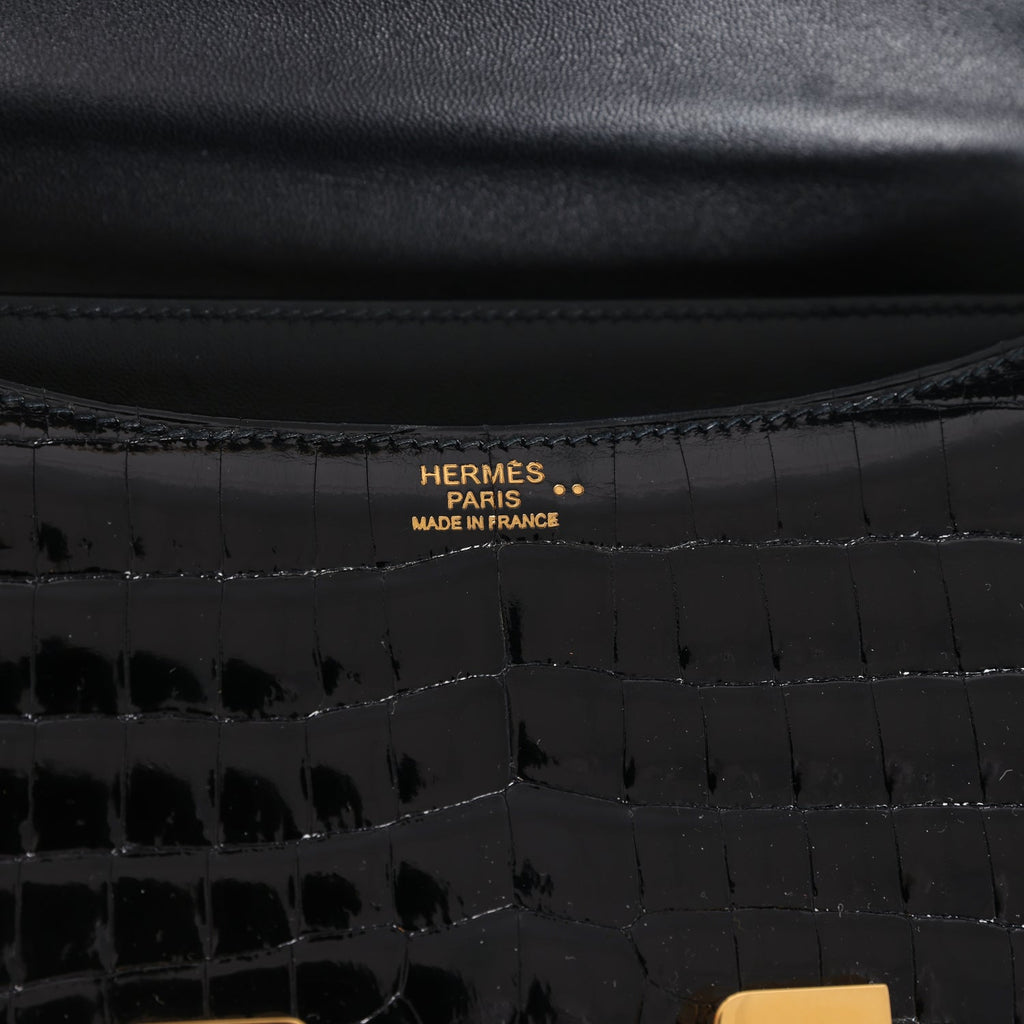 Pre-owned Hermes Constance 24 Black Shiny Niloticus Crocodile Gold Hardware
