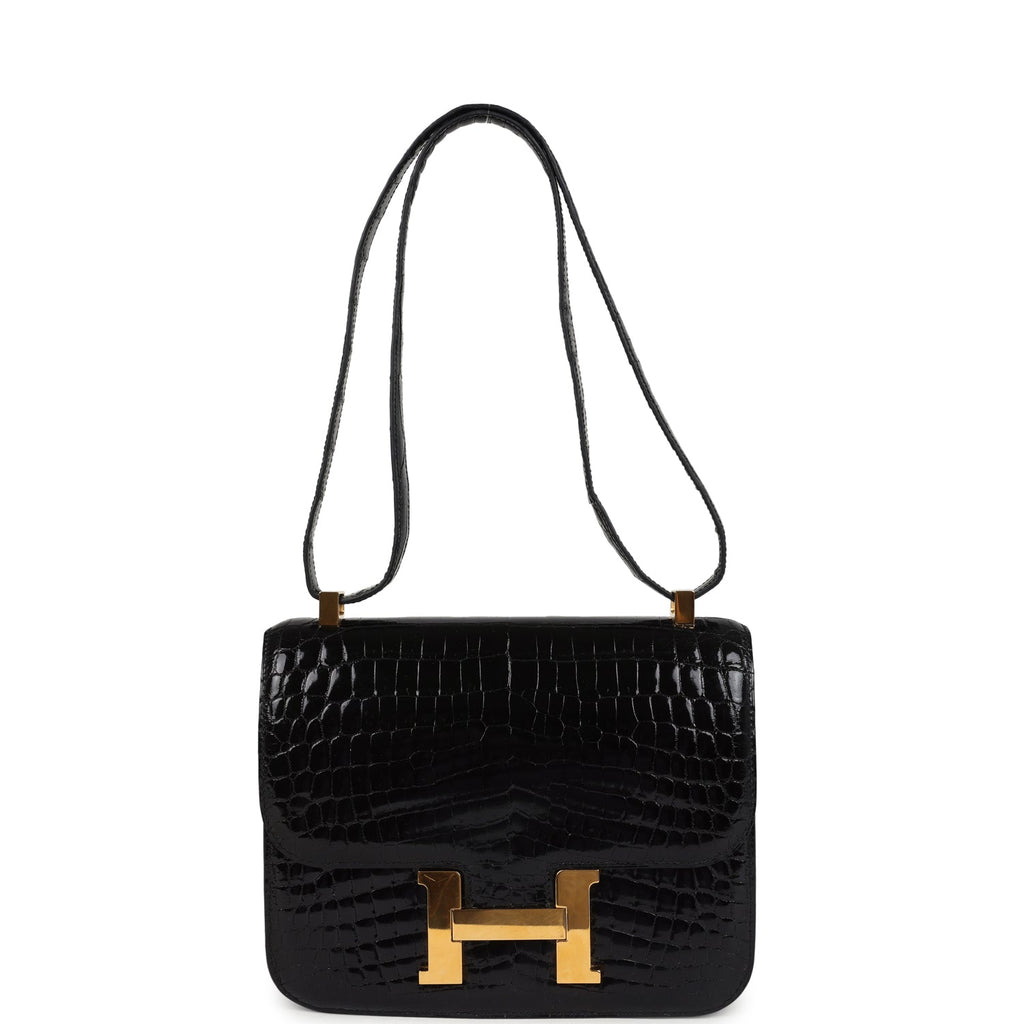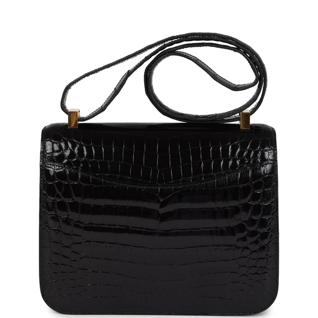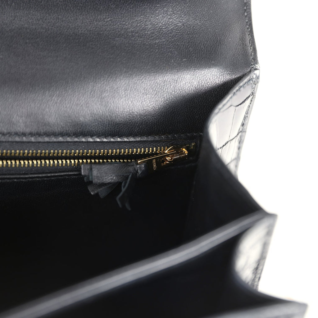 Pre-owned Hermes Constance 24 Black Shiny Niloticus Crocodile Gold Hardware