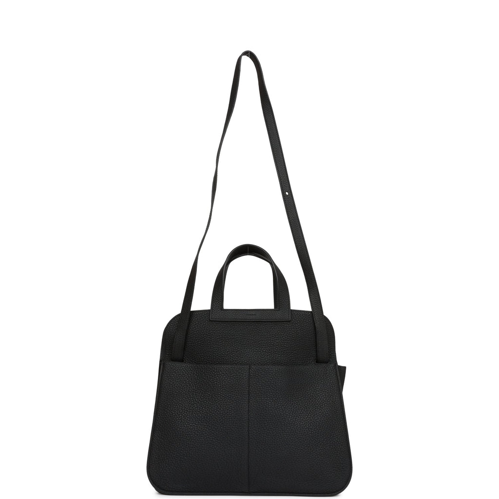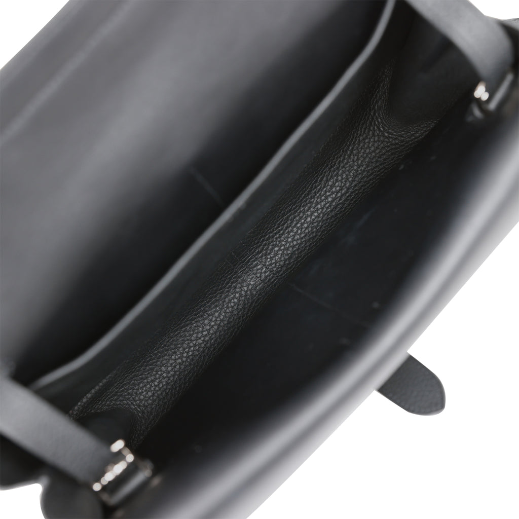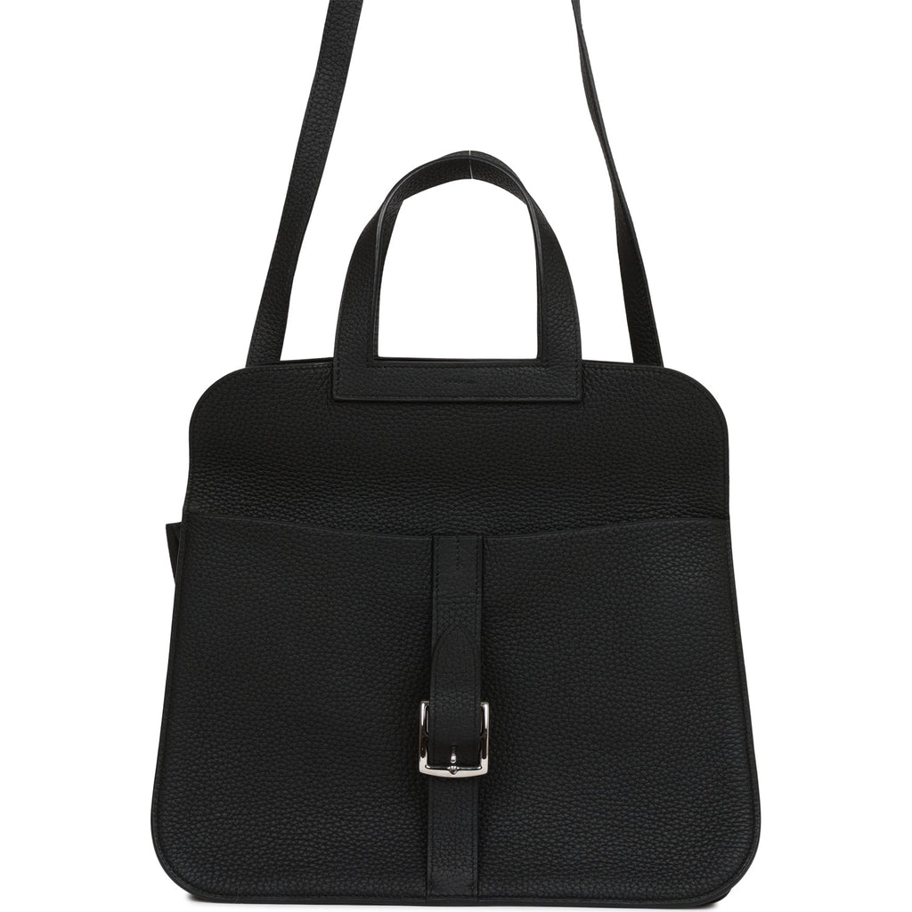 Pre-owned Hermes Halzan 25 Black Clemence Palladium Hardware