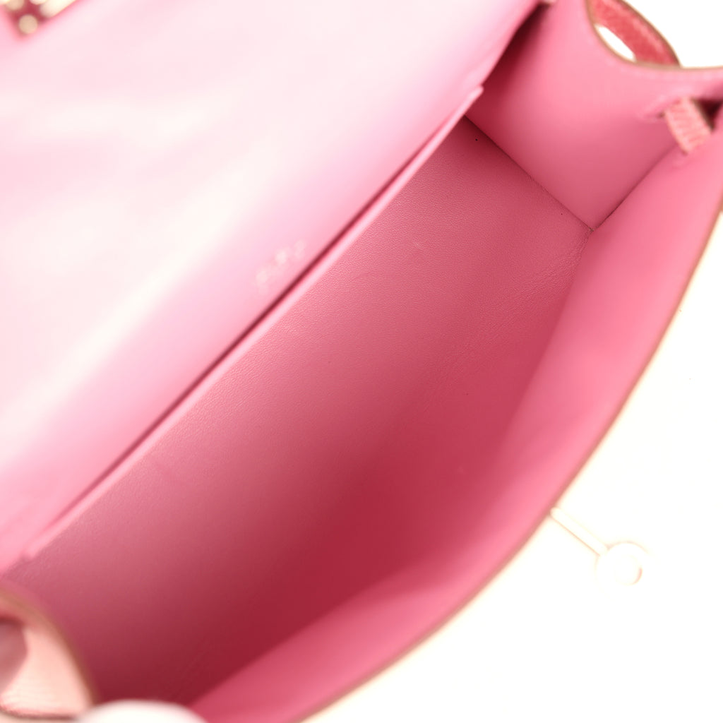 Pre-owned Hermes Kelly Pochette 5P Bubblegum Niloticus Lizard Palladium Hardware