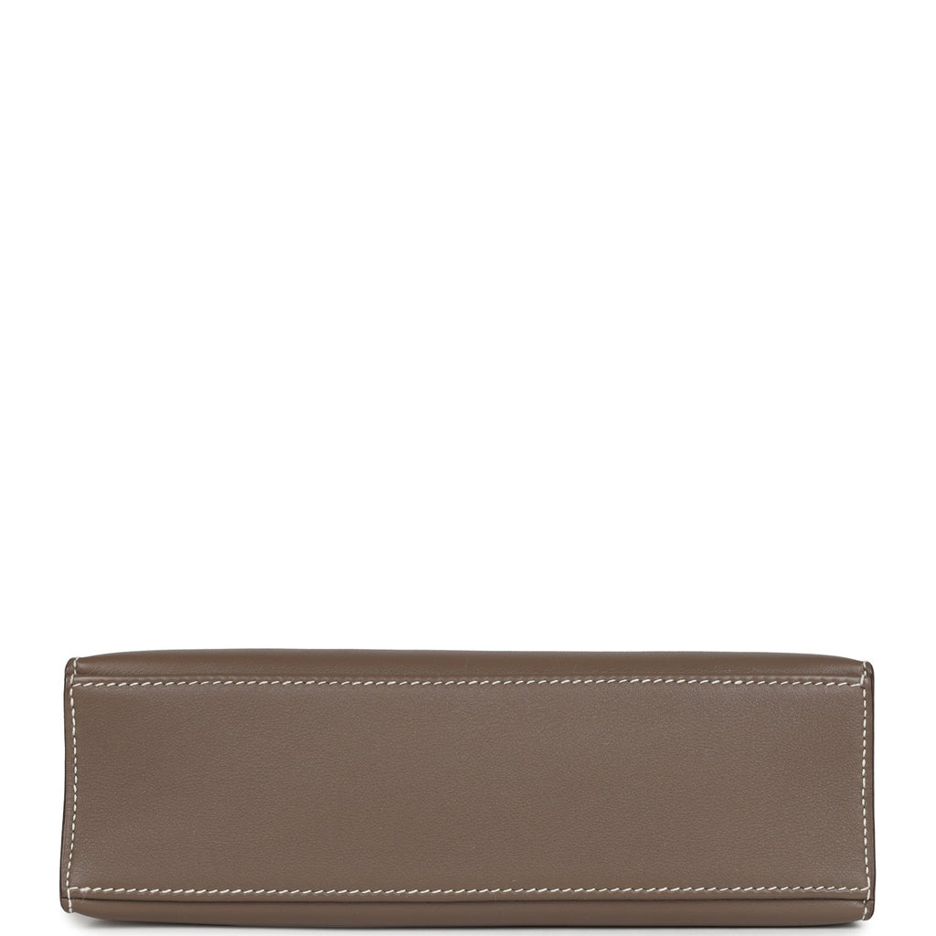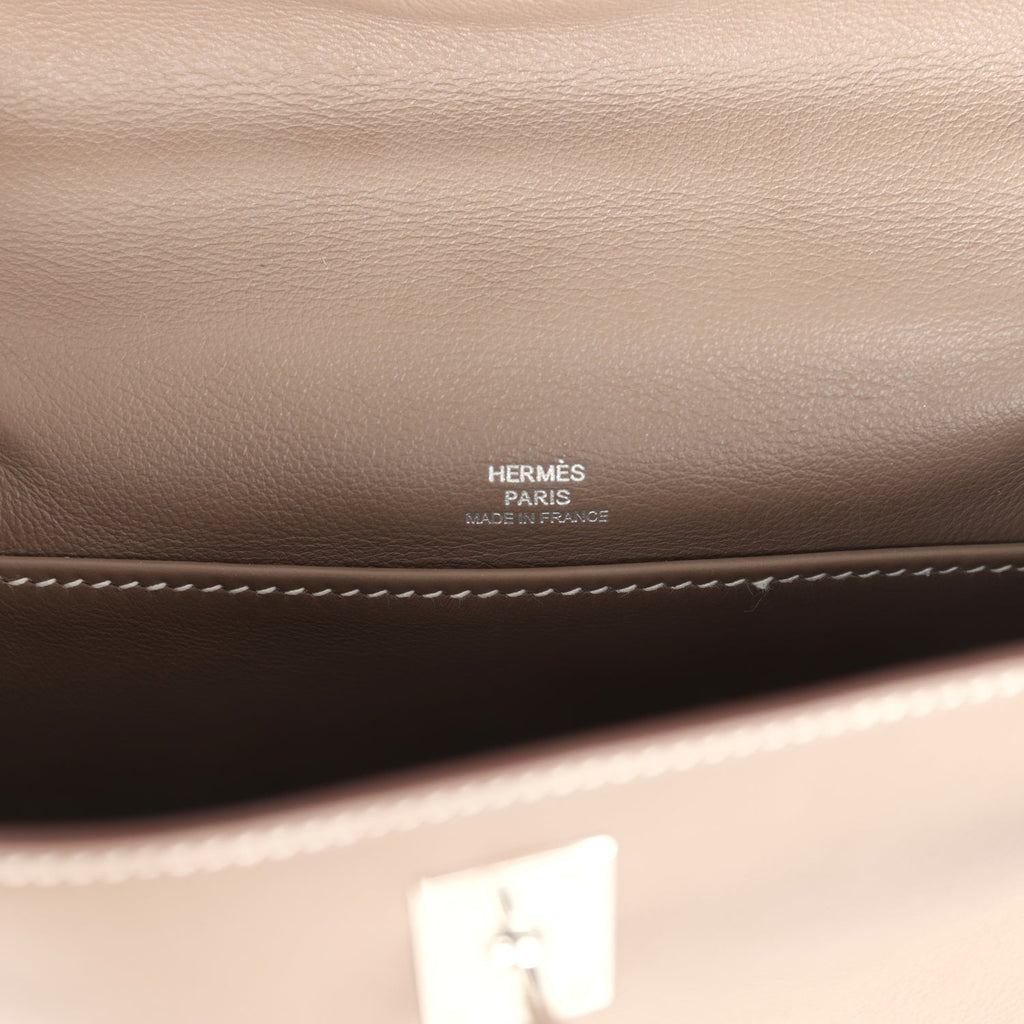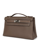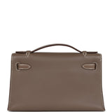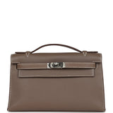 Pre-owned Hermes Kelly Pochette Etoupe Swift Palladium Hardware
