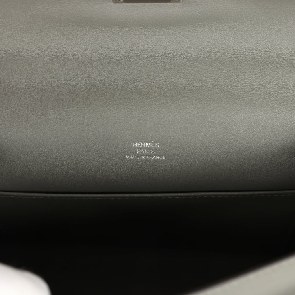 Pre-owned Hermes Kelly Pochette Gris Meyer Swift Paladium Hardware