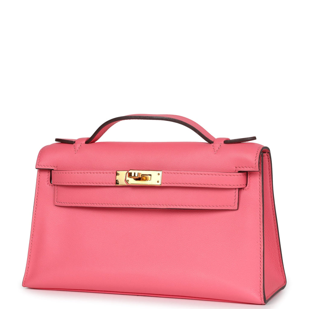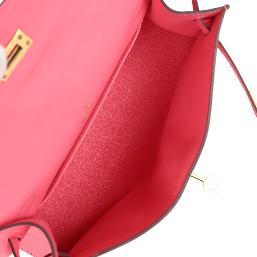 Pre-owned Hermes Kelly Pochette Rose Azalee Swift Gold Hardware