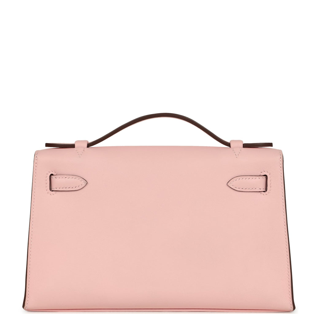 Pre-owned Hermes Kelly Pochette Rose Sakura Swift Palladium Hardware