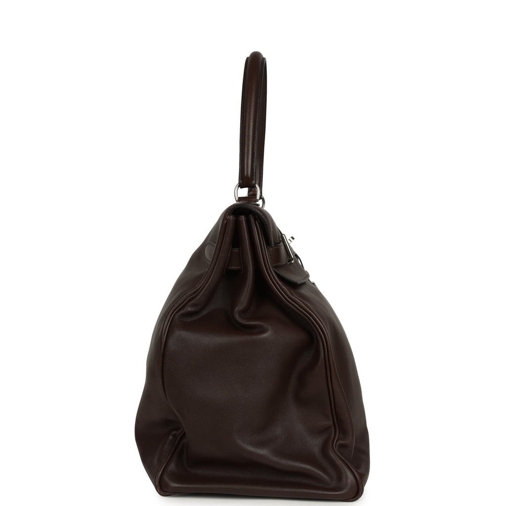 Pre-owned Hermes Kelly Relax 50 Ebene Sikkim Palladium Hardware