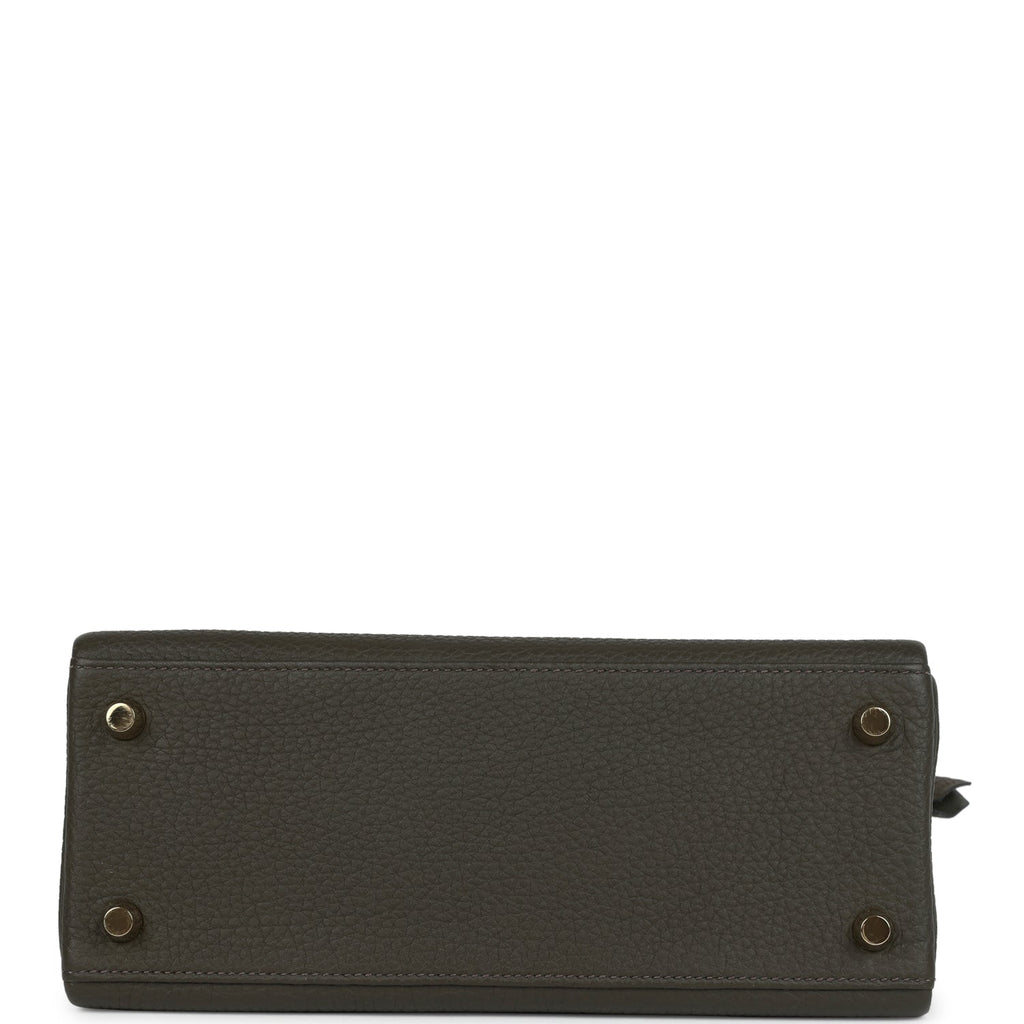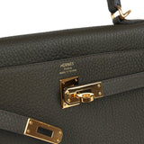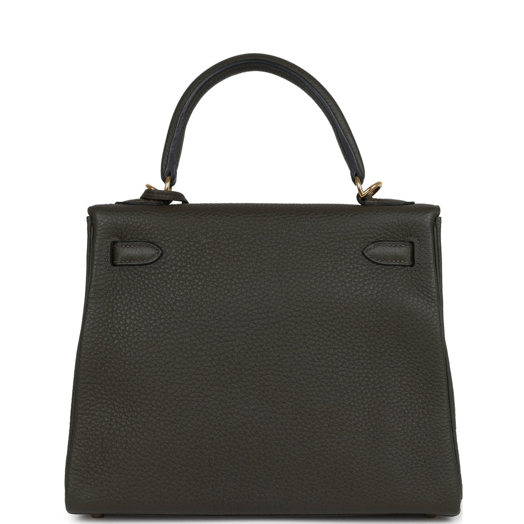 Pre-owned Hermes Kelly Retourne 25 Vert De Gris Togo Gold Hardware