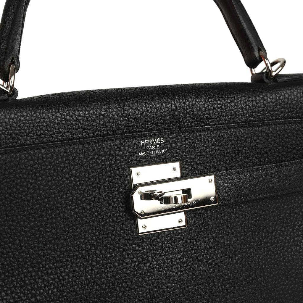 Pre-owned Hermes Kelly Retourne 28 Black Togo Palladium Hardware