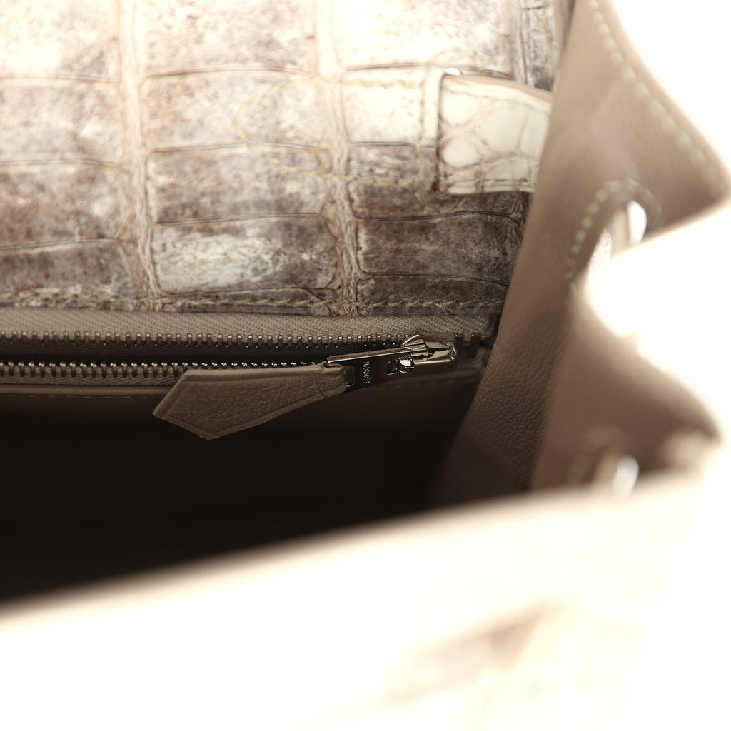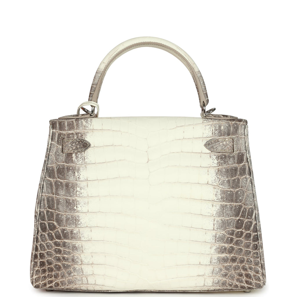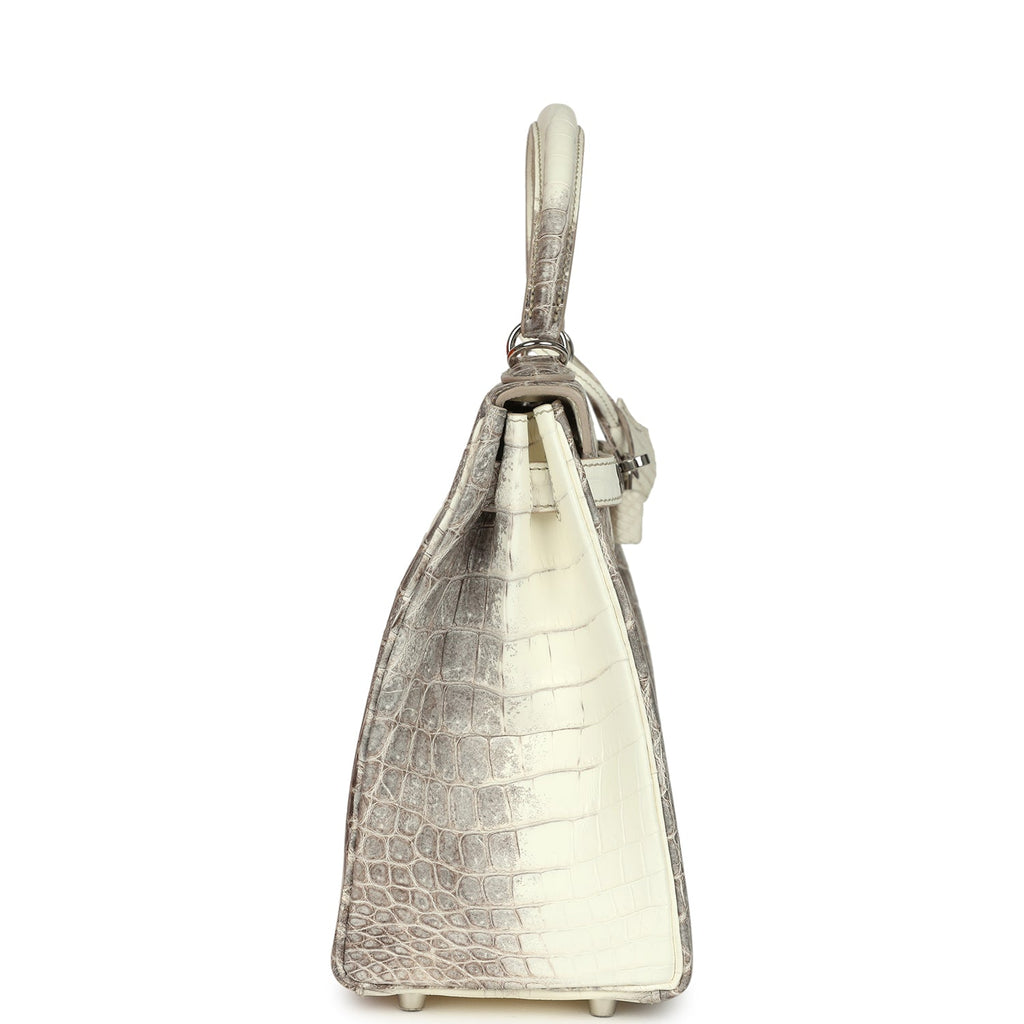 Pre-owned Hermes Kelly Retourne 28 Himalaya Matte Niloticus Crocodile Palladium Hardware
