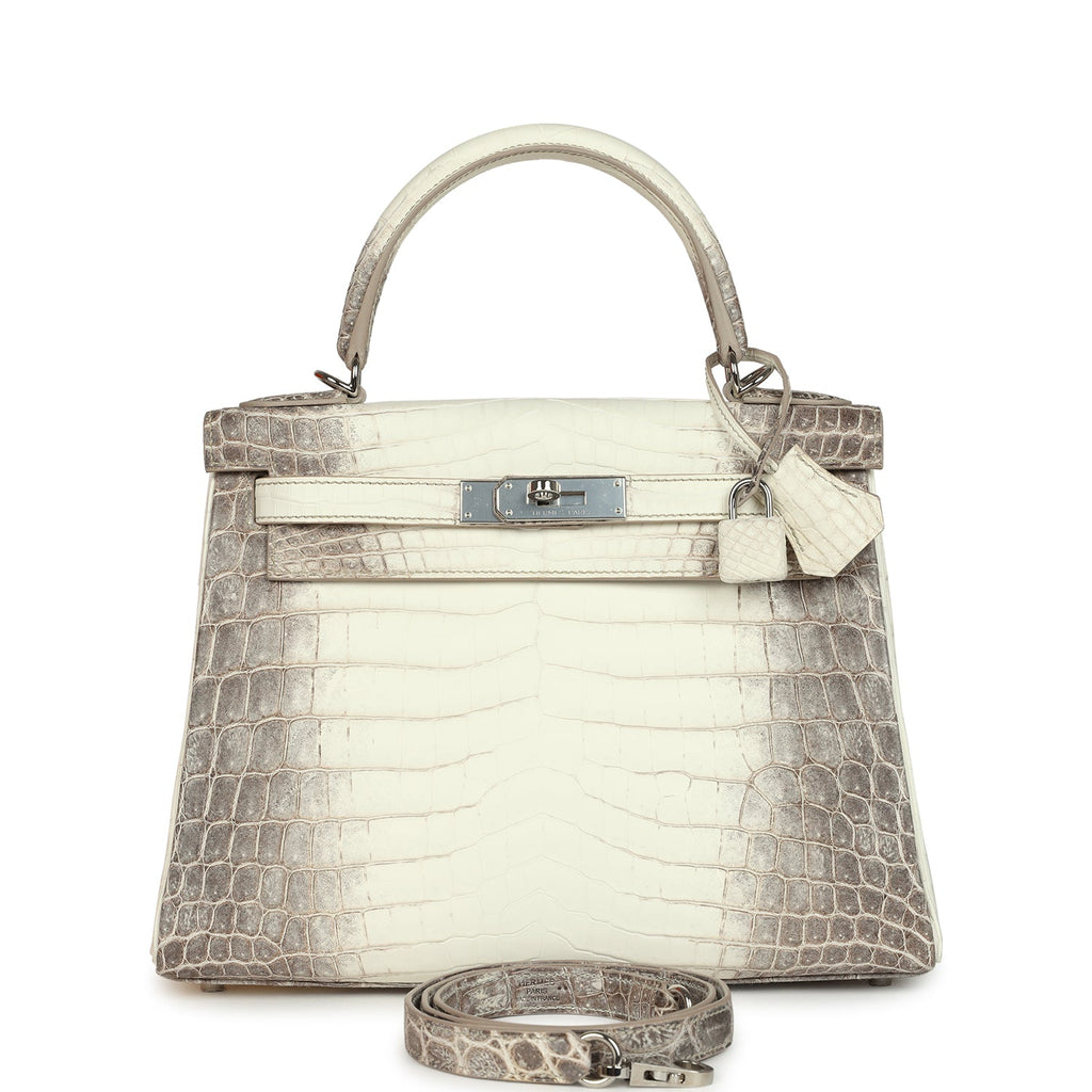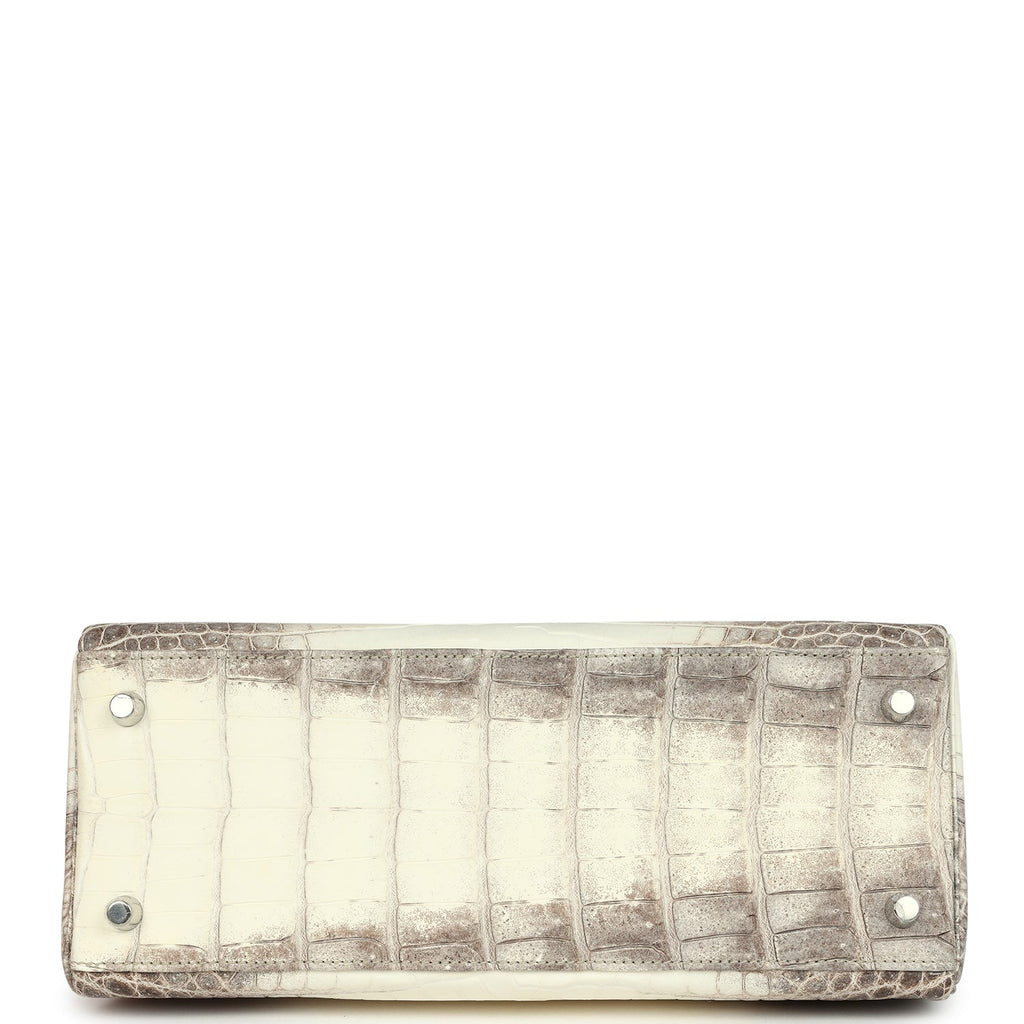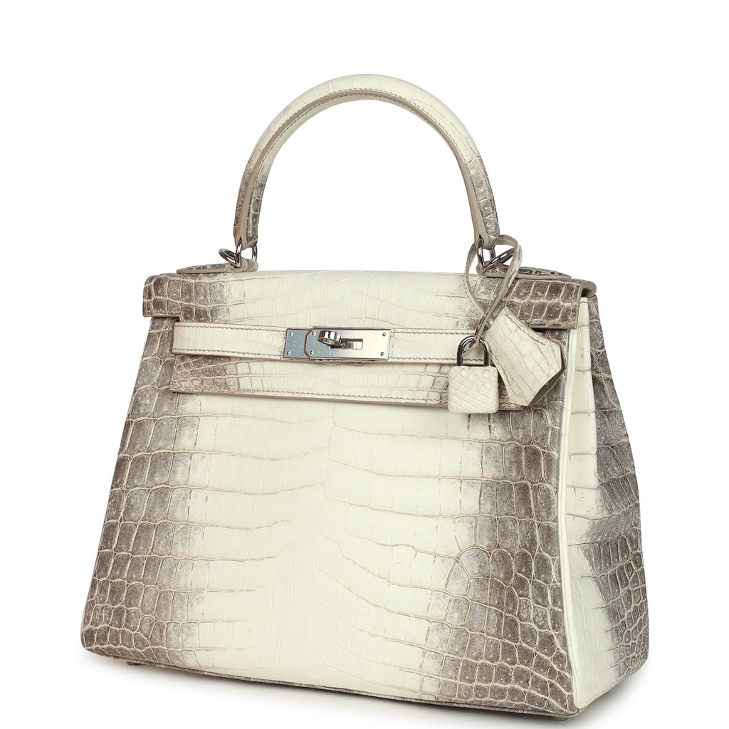 Pre-owned Hermes Kelly Retourne 28 Himalaya Matte Niloticus Crocodile Palladium Hardware