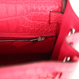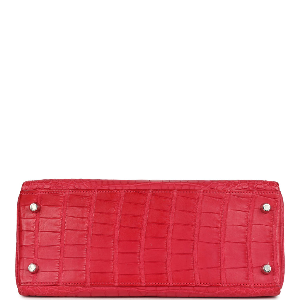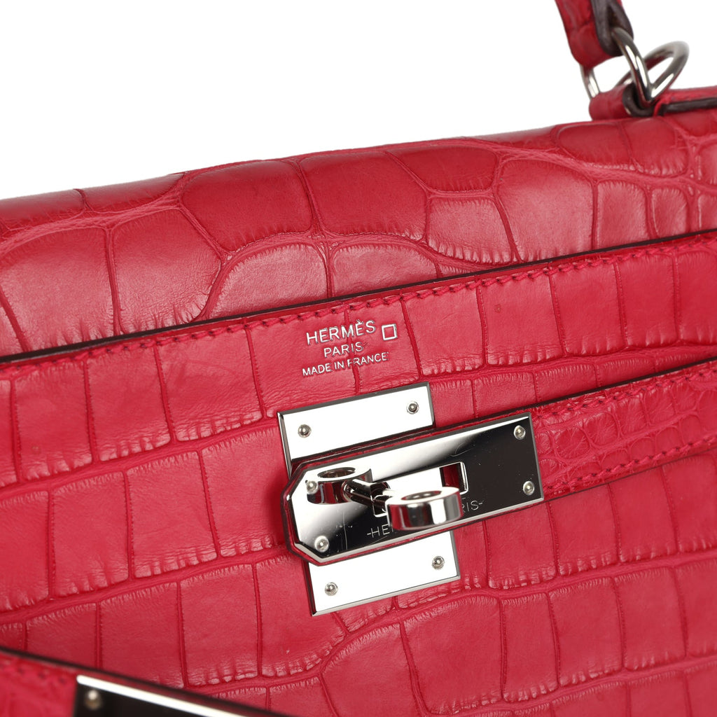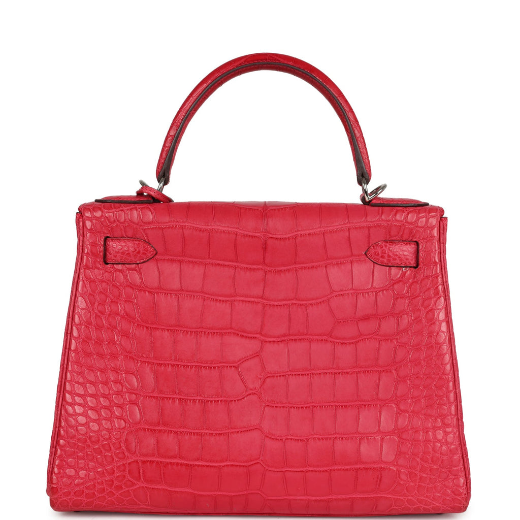 Pre-owned Hermes Kelly Retourne 28 Rose Extreme Matte Alligator Palladium Hardware