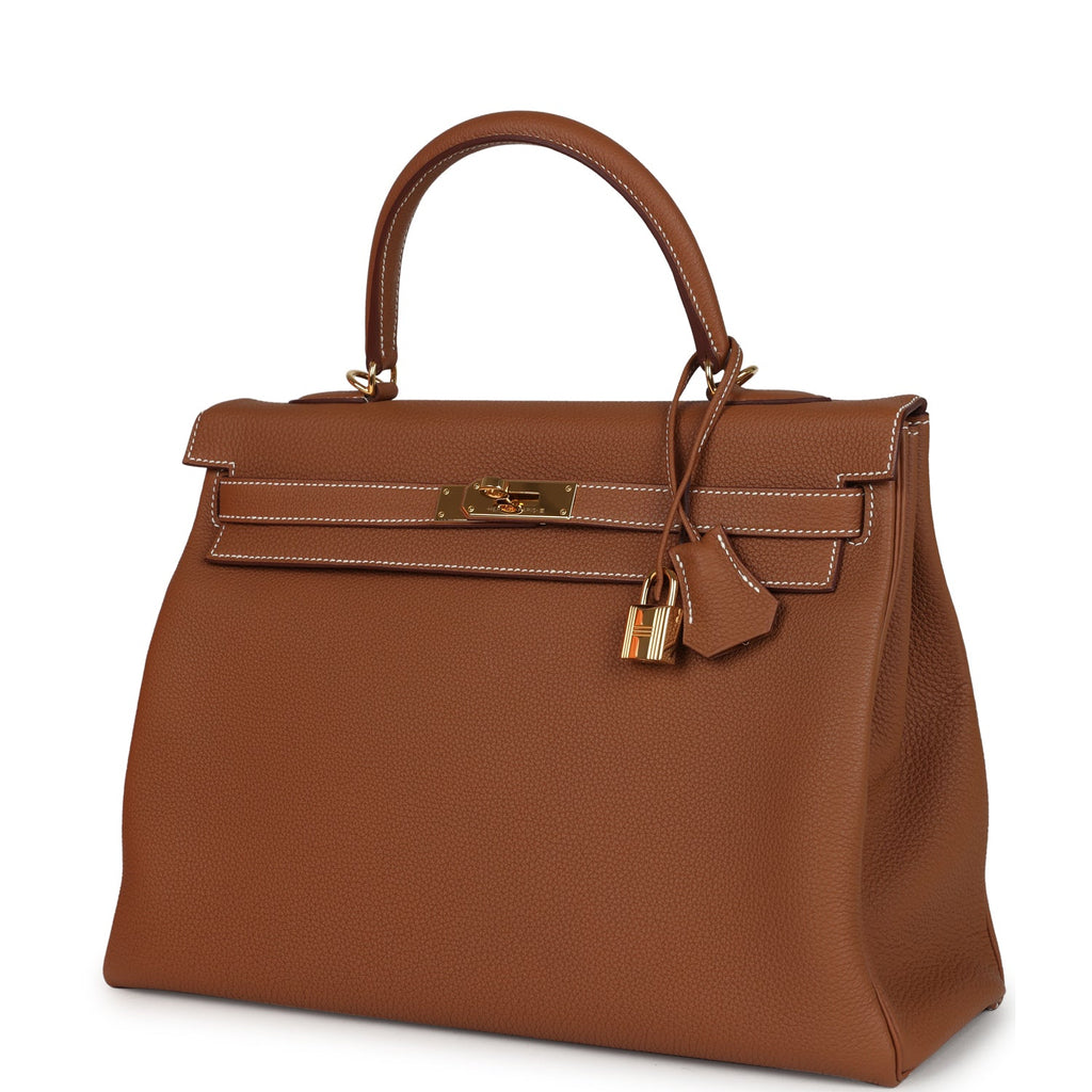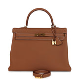 Pre-owned Hermes Kelly Retourne 35 Gold Togo Gold Hardware