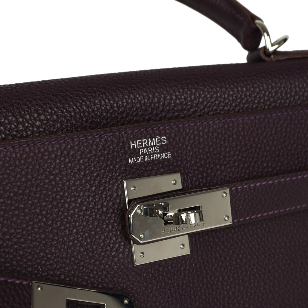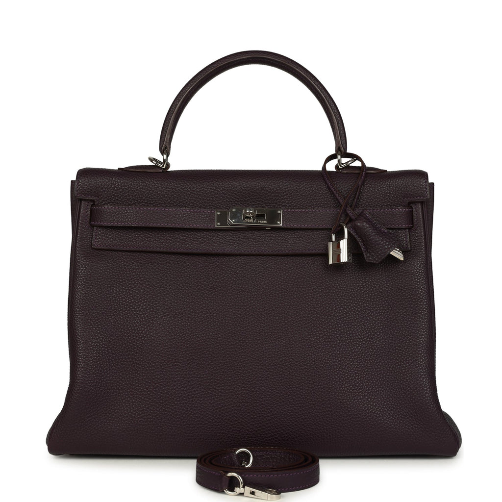 Pre-owned Hermes Kelly Retourne 35 Raisin Togo Palladium Hardware