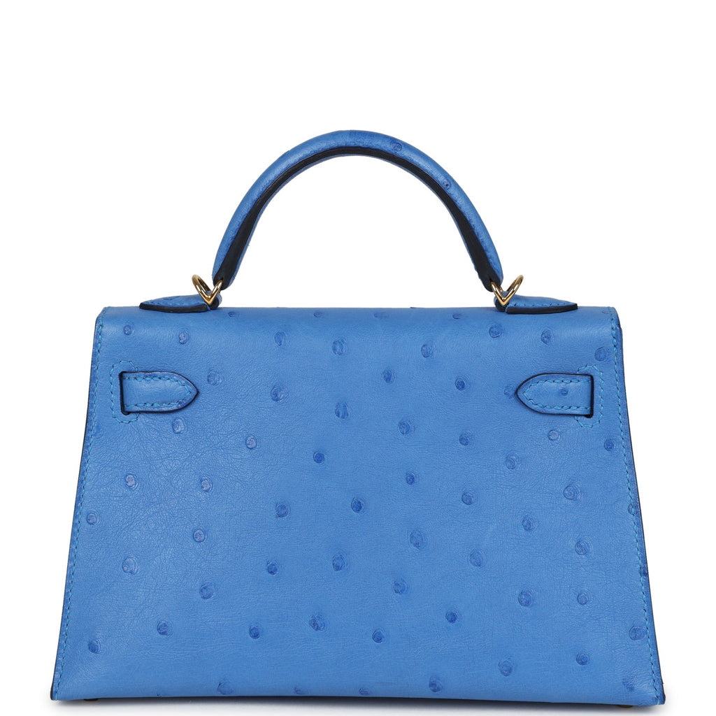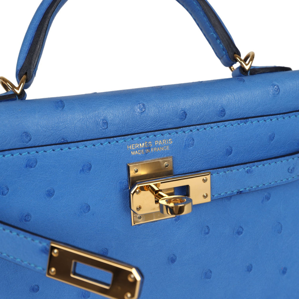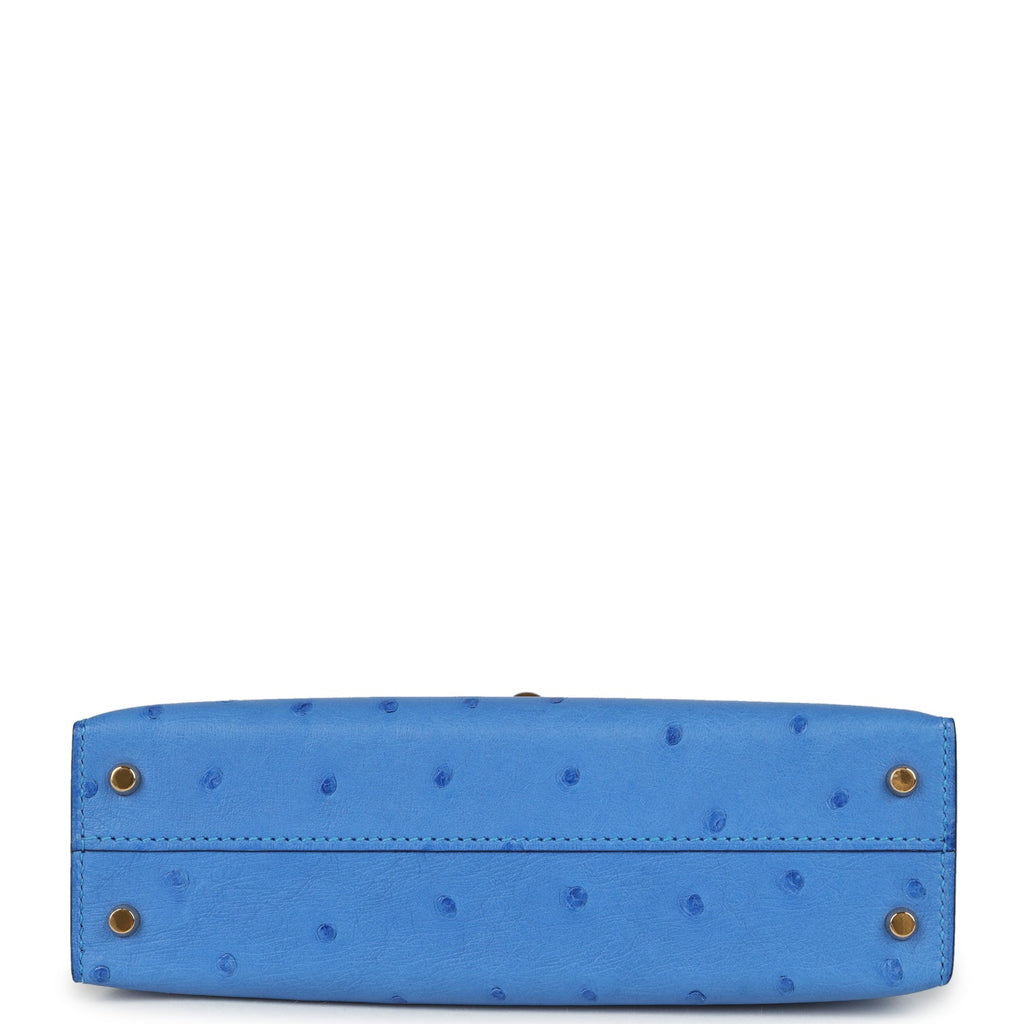 Pre-owned Hermes Kelly Sellier 20 Bleuet Ostrich Gold Hardware