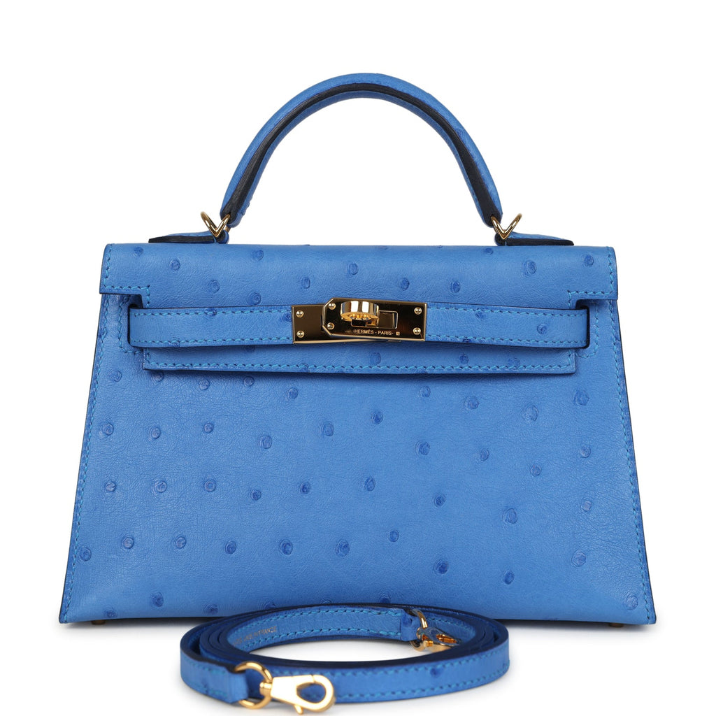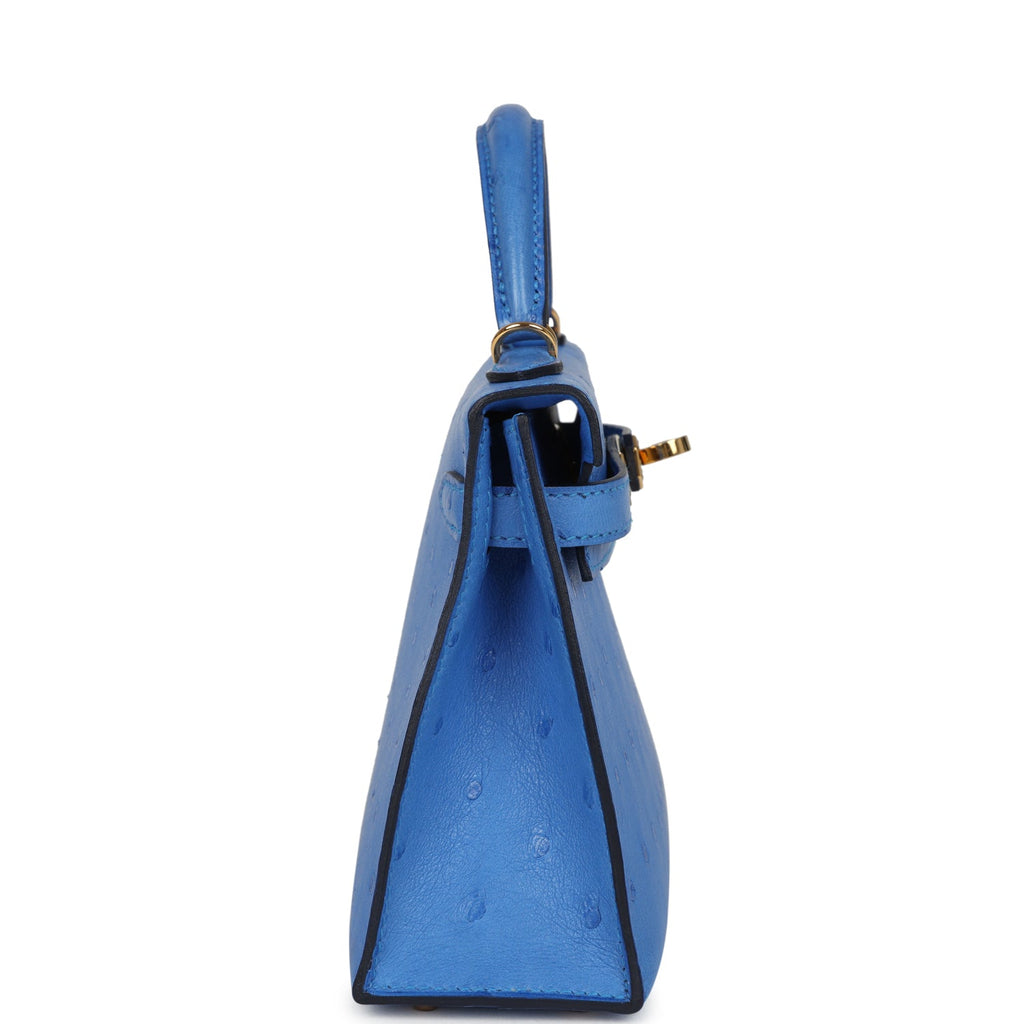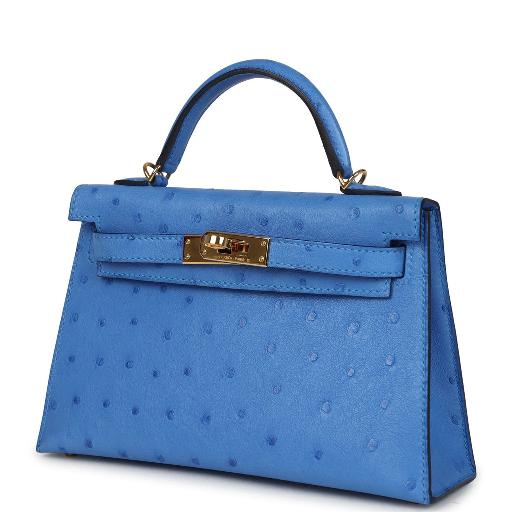 Pre-owned Hermes Kelly Sellier 20 Bleuet Ostrich Gold Hardware