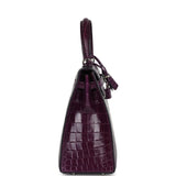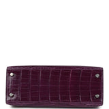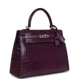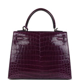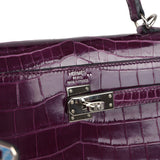 Pre-owned Hermes Kelly Sellier 25 Amethyst Shiny Niloticus Crocodile Palladium Hardware