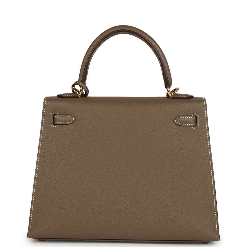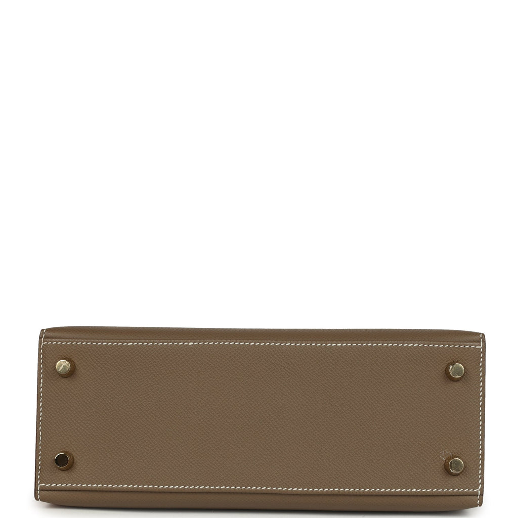 Pre-owned Hermes Kelly Sellier 25 Etoupe Epsom Gold Hardware