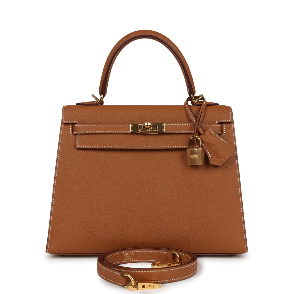 Pre-owned Hermes Kelly Sellier 25 Gold Epsom Gold Hardware
