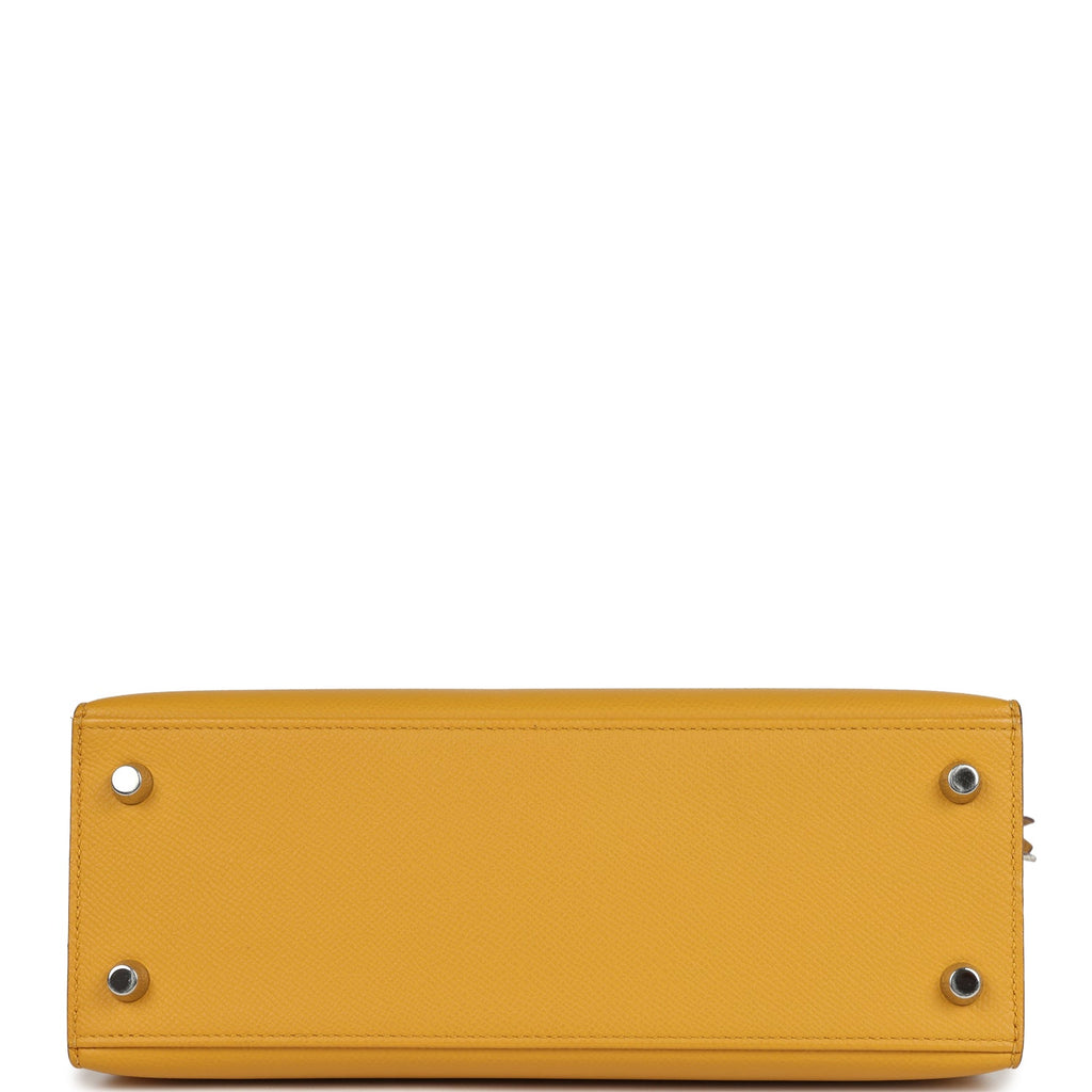 Pre-owned Hermes Kelly Sellier 25 Jaune Ambre Epsom Palladium Hardware