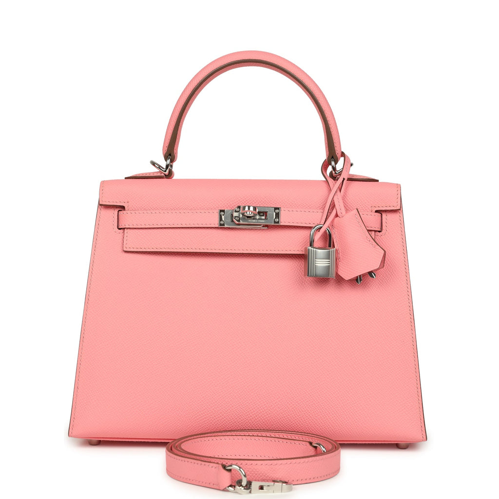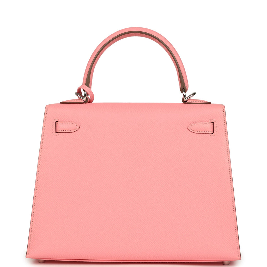 Pre-owned Hermes Kelly Sellier 25 Rose Confetti Epsom Palladium Hardware