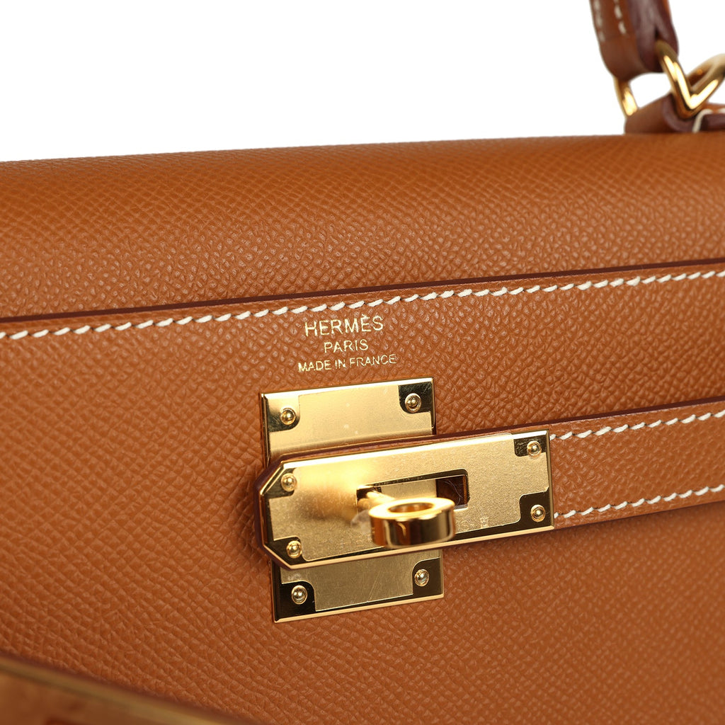Pre-owned Hermes Kelly Sellier 28 Gold Epsom Gold Hardware