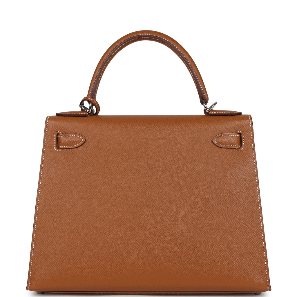 Pre-owned Hermes Kelly Sellier 28 Gold Epsom Palladium Hardware