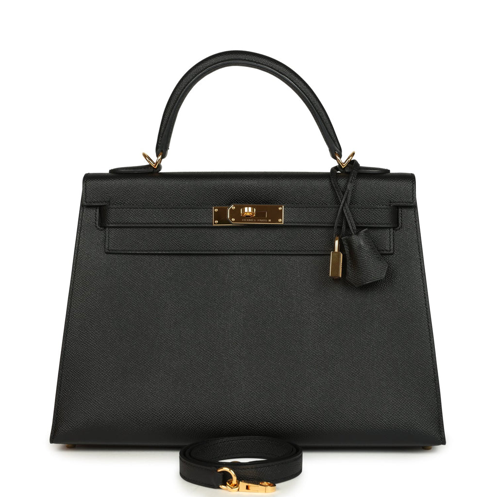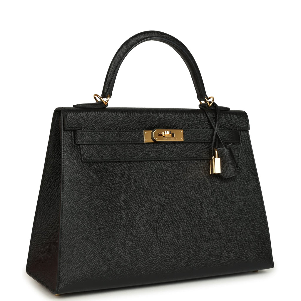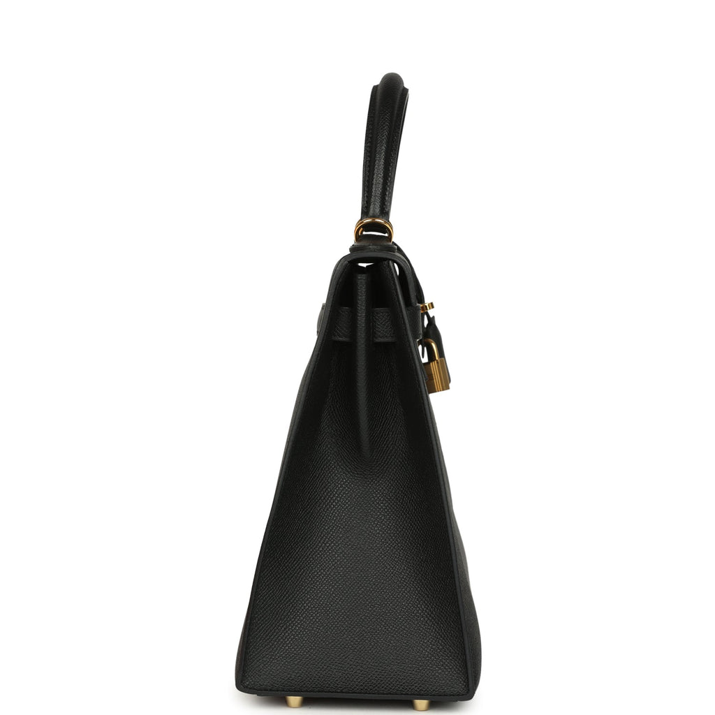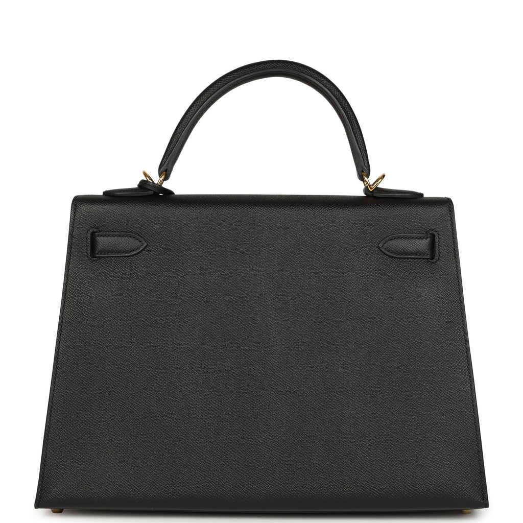 Pre-owned Hermes Kelly Sellier 32 Black Epsom Gold Hardware