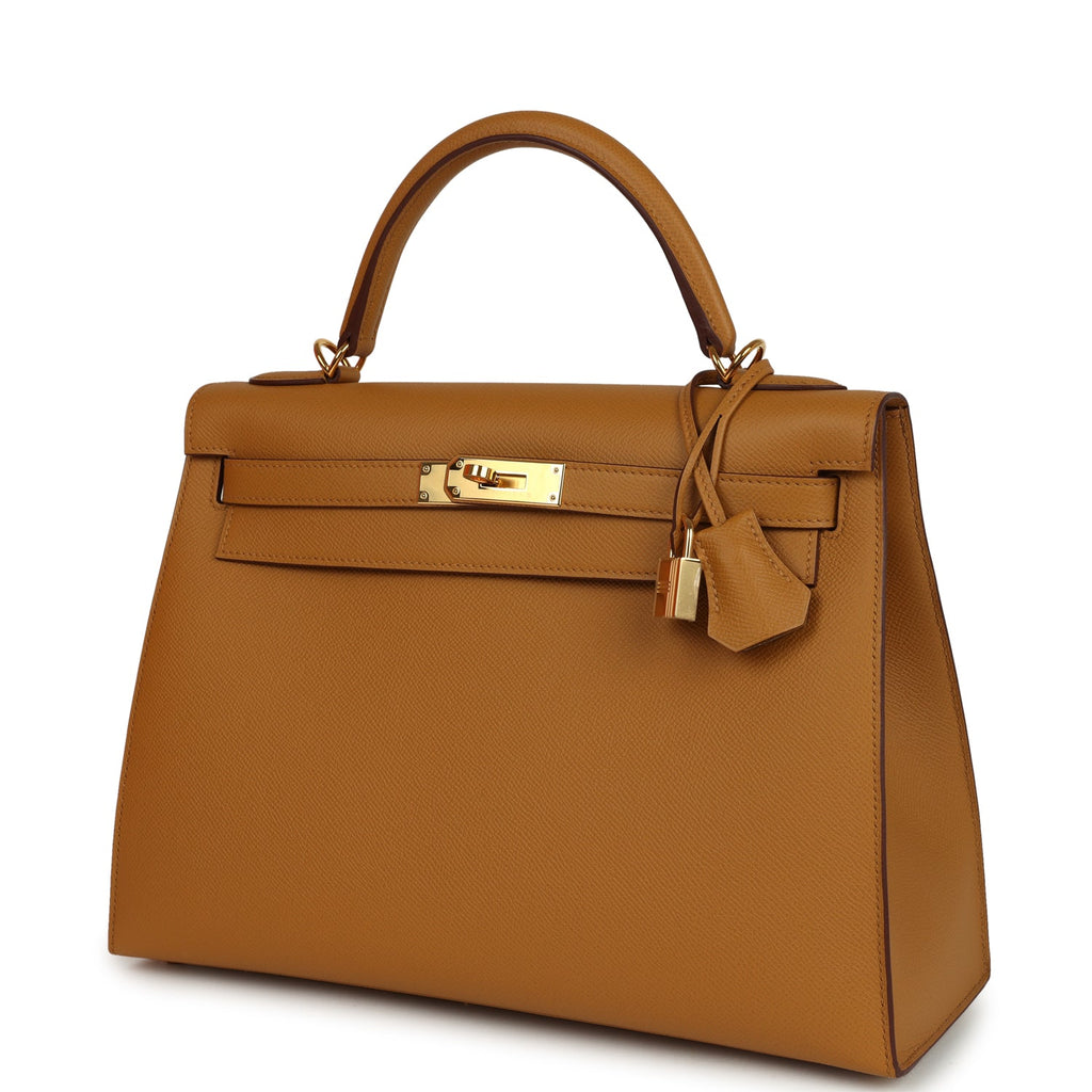 Pre-owned Hermes Kelly Sellier 32 Sesame Epsom Gold Hardware