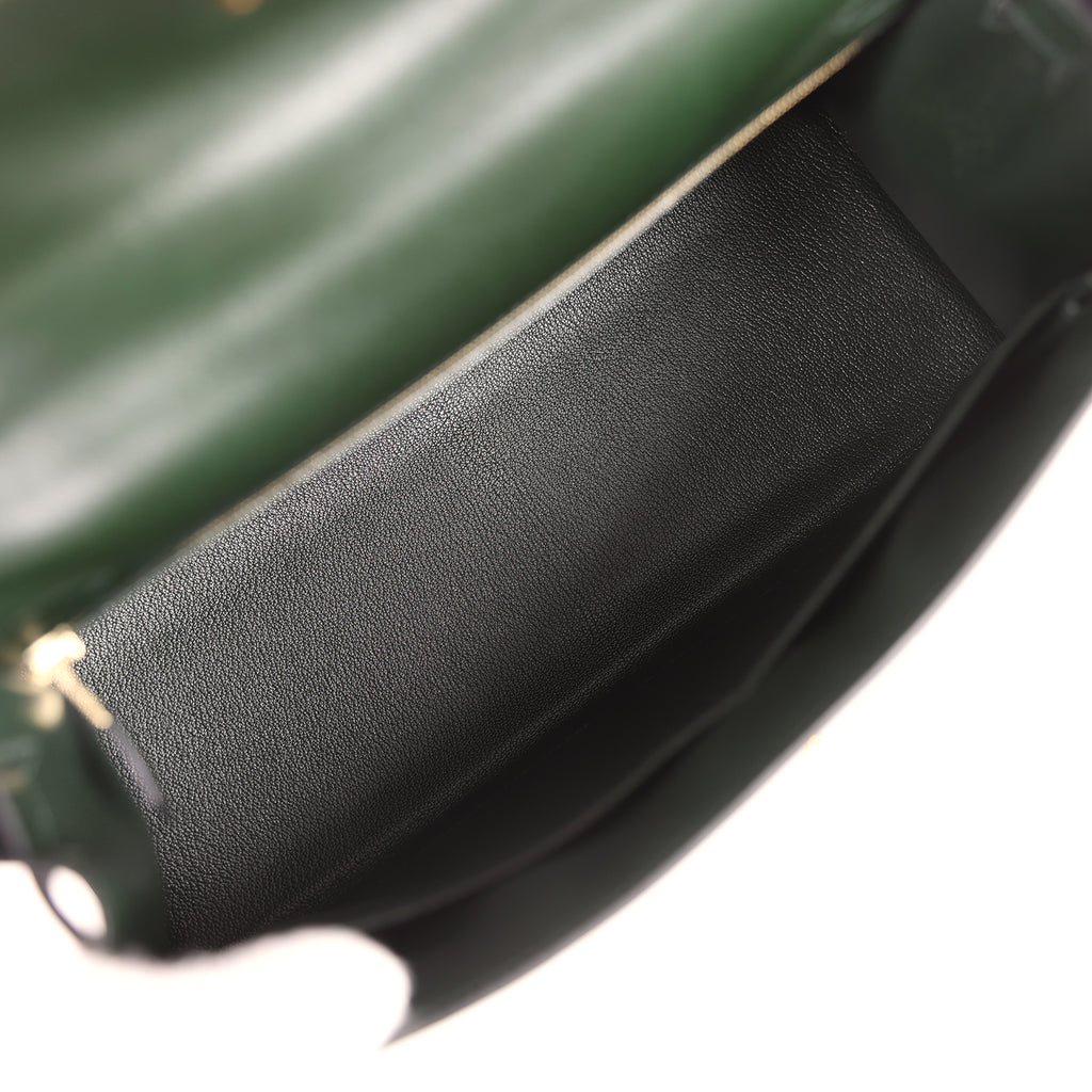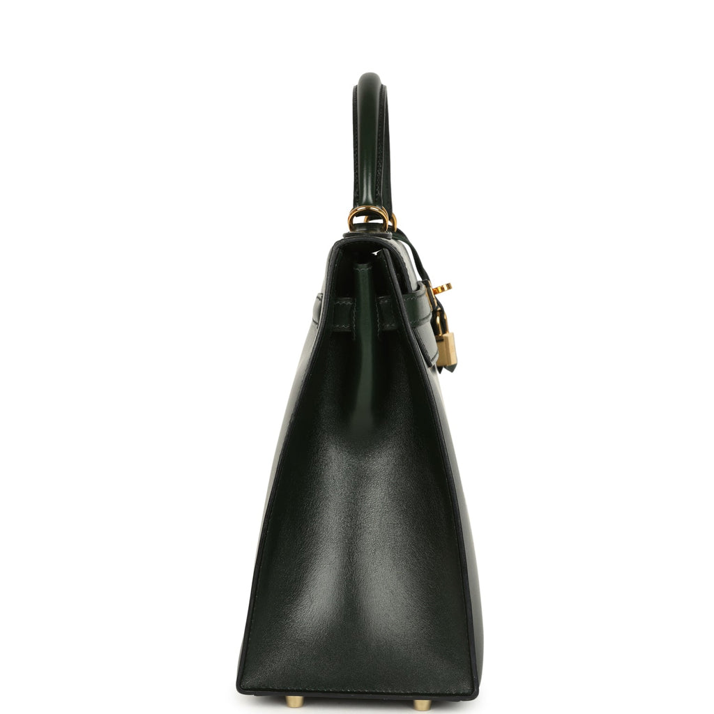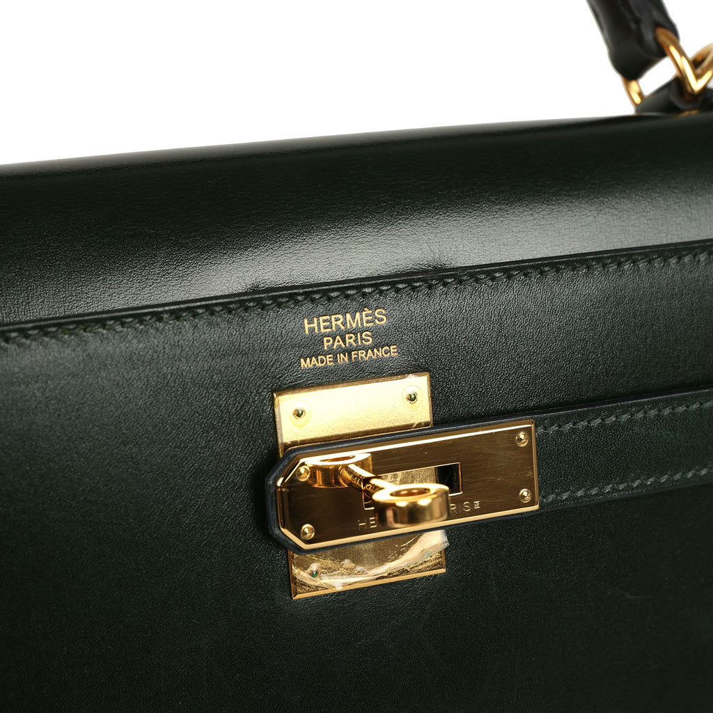 Pre-owned Hermes Kelly Sellier 32 Vert Fonce Box Gold Hardware
