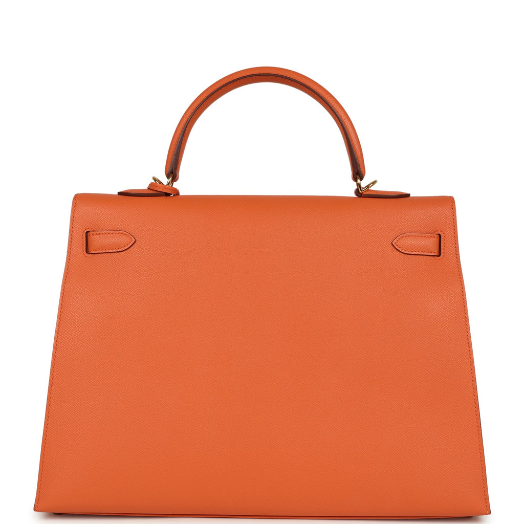 Pre-owned Hermes Kelly Sellier 35 Mango Epsom Gold Hardware