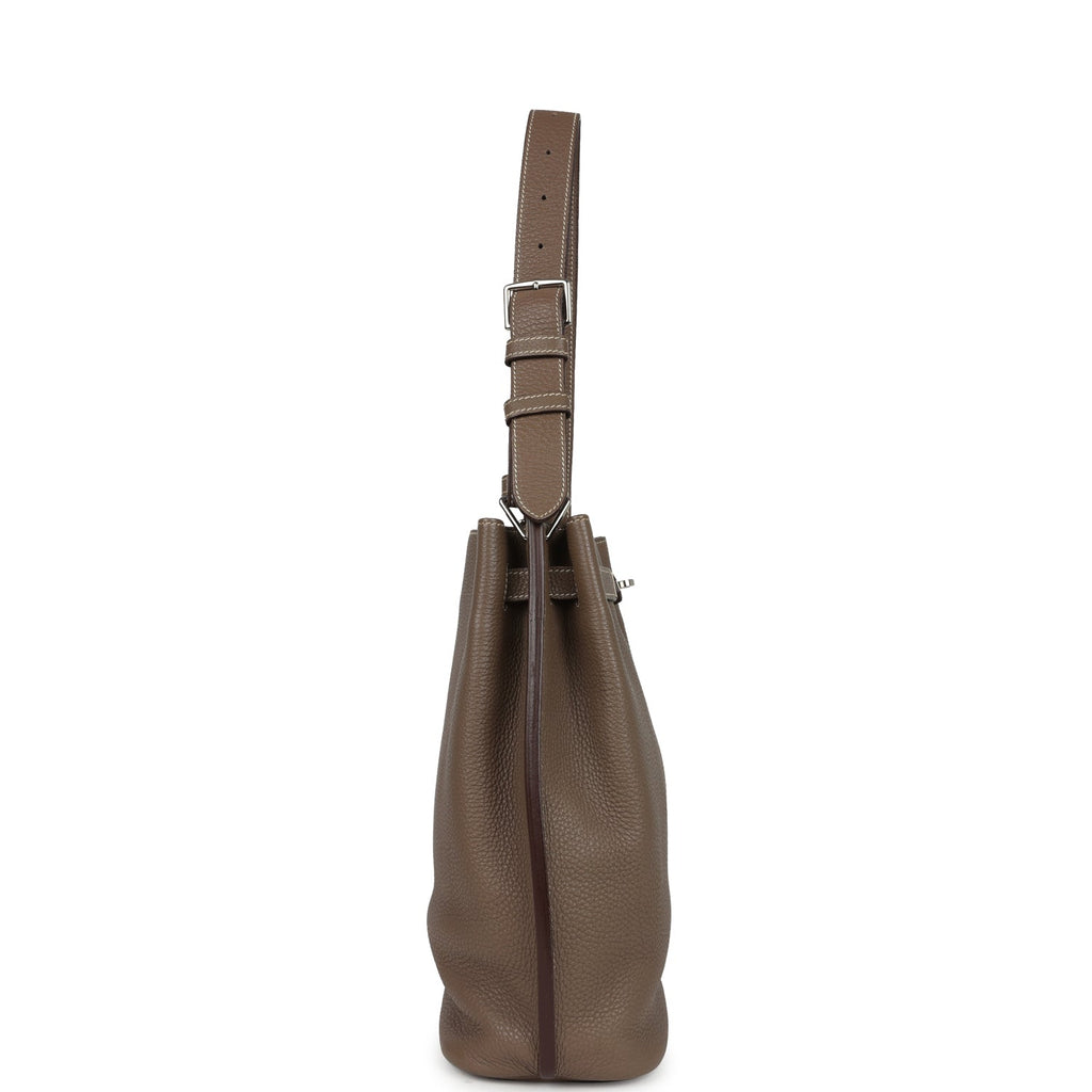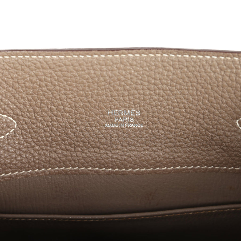 Pre-owned Hermes So Kelly 22 Etoupe Clemence Palladium Hardware