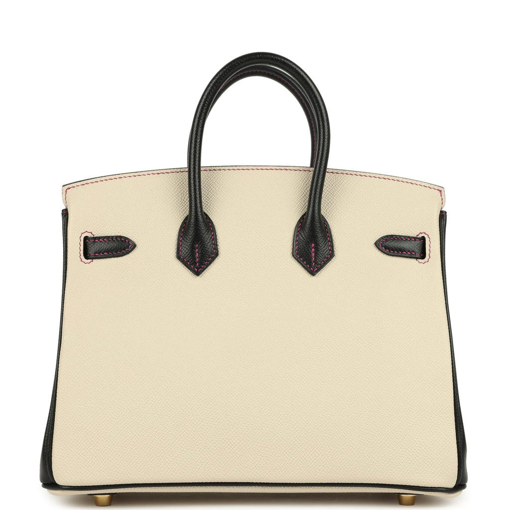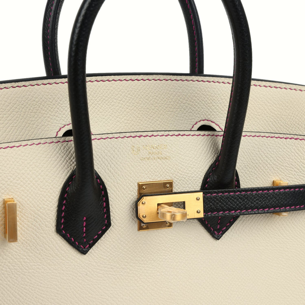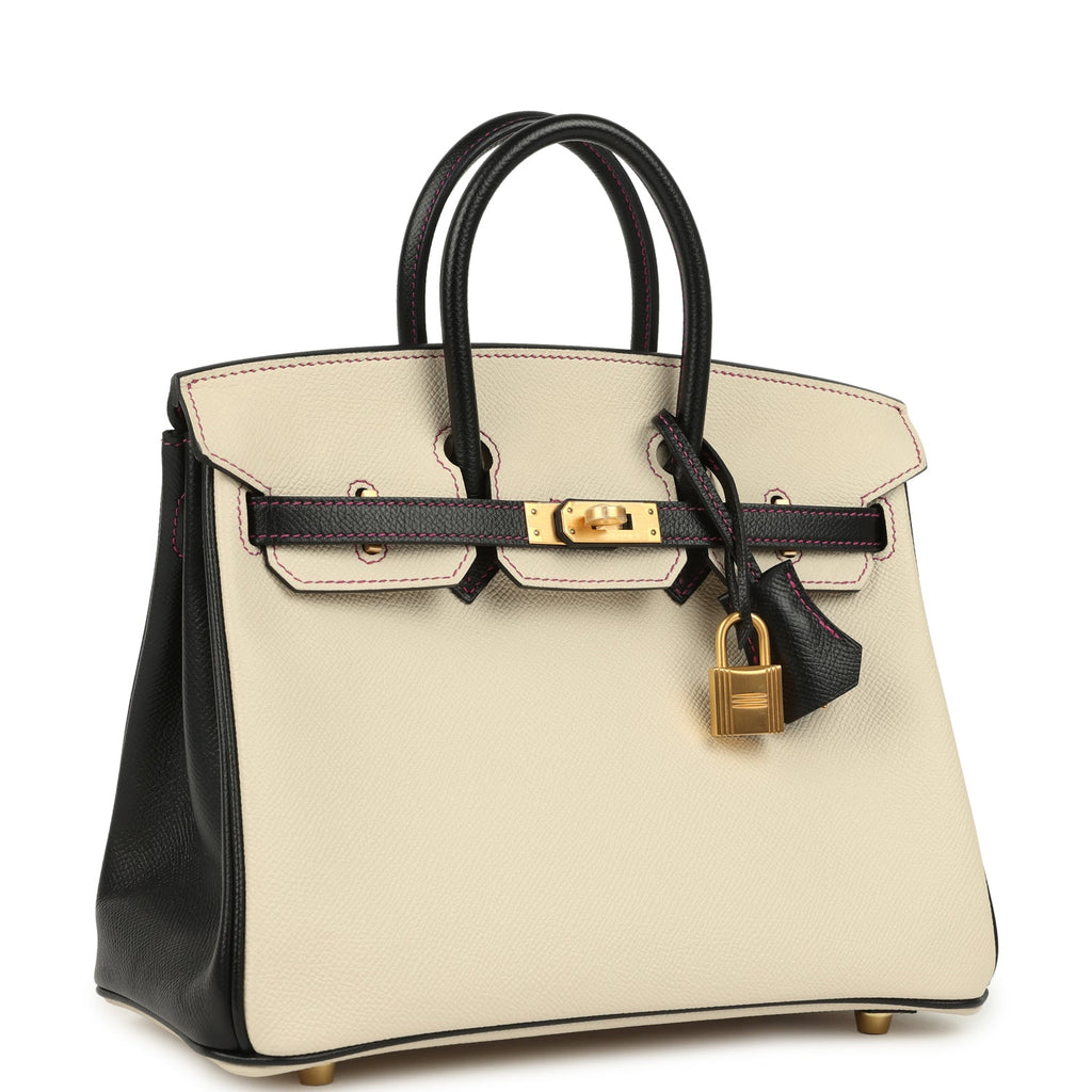Pre-owned Hermes Special Order (HSS) Birkin 25 Craie and Black Epsom Brushed Gold Hardware