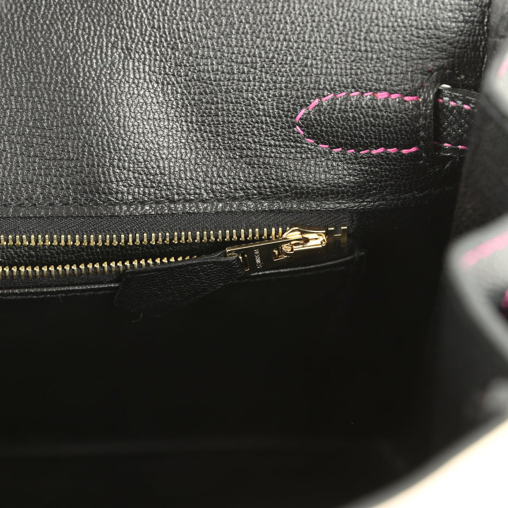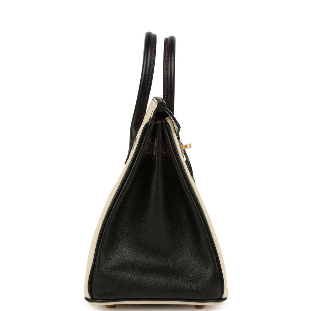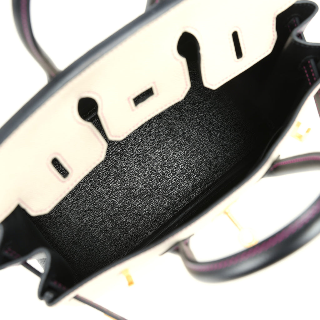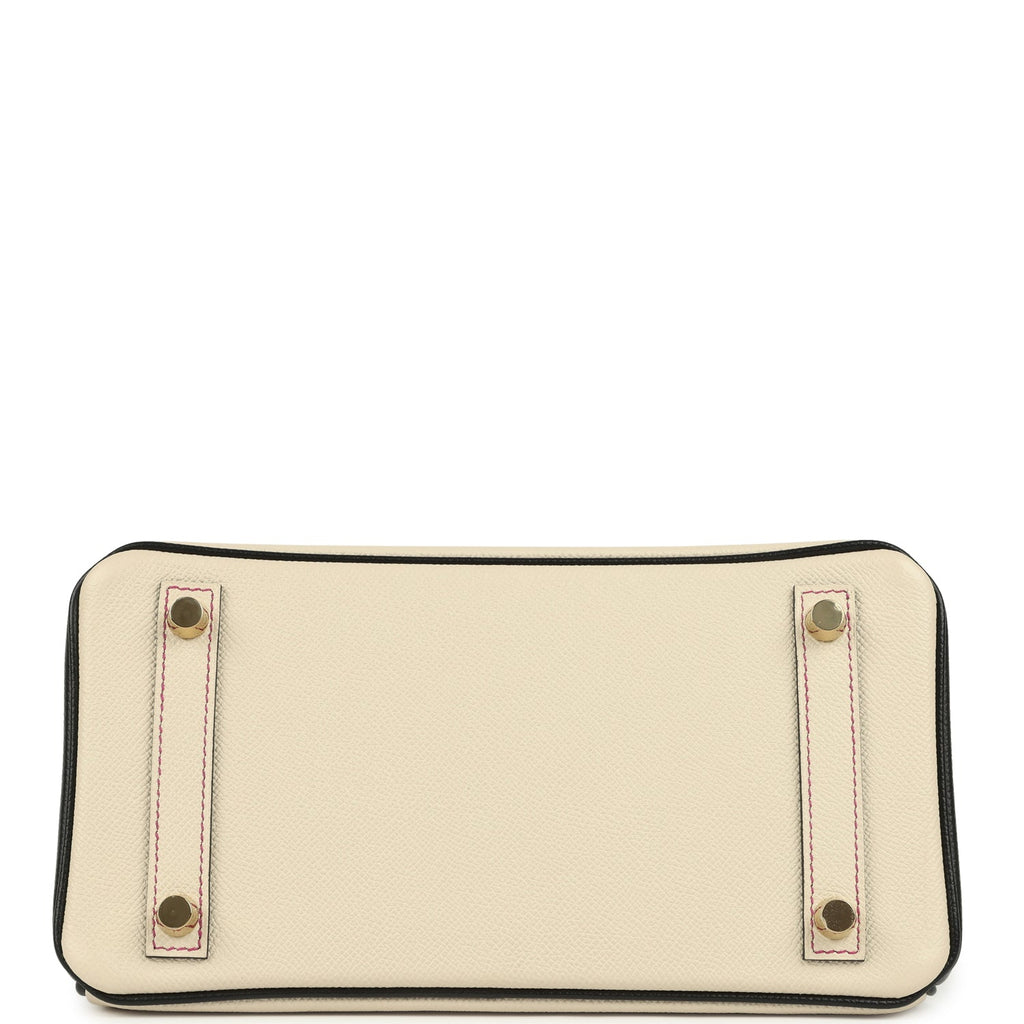 Pre-owned Hermes Special Order (HSS) Birkin 25 Craie and Black Epsom Brushed Gold Hardware