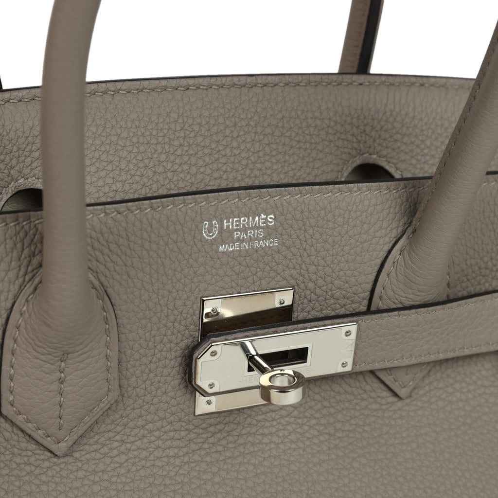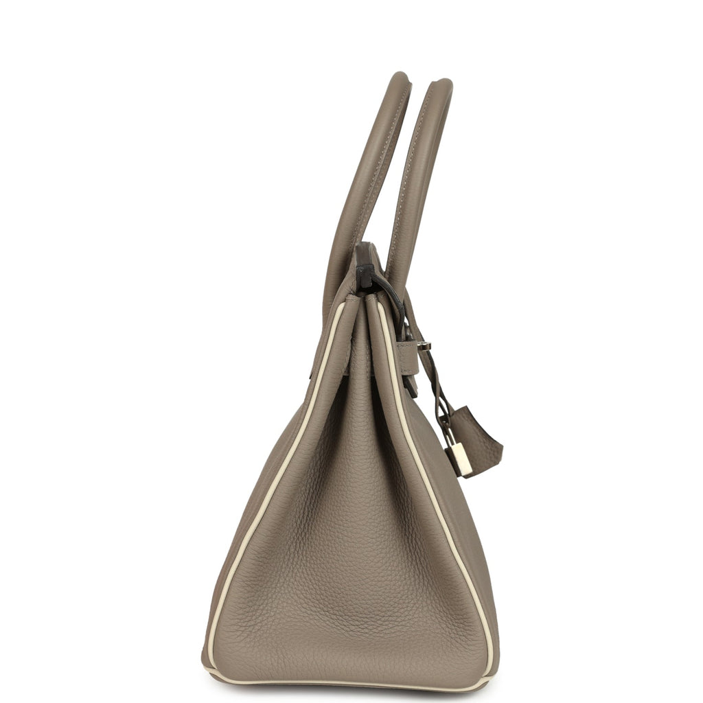 Pre-owned Hermes Special Order (HSS) Birkin 30 Gris Asphalte and Craie Togo Palladium Hardware
