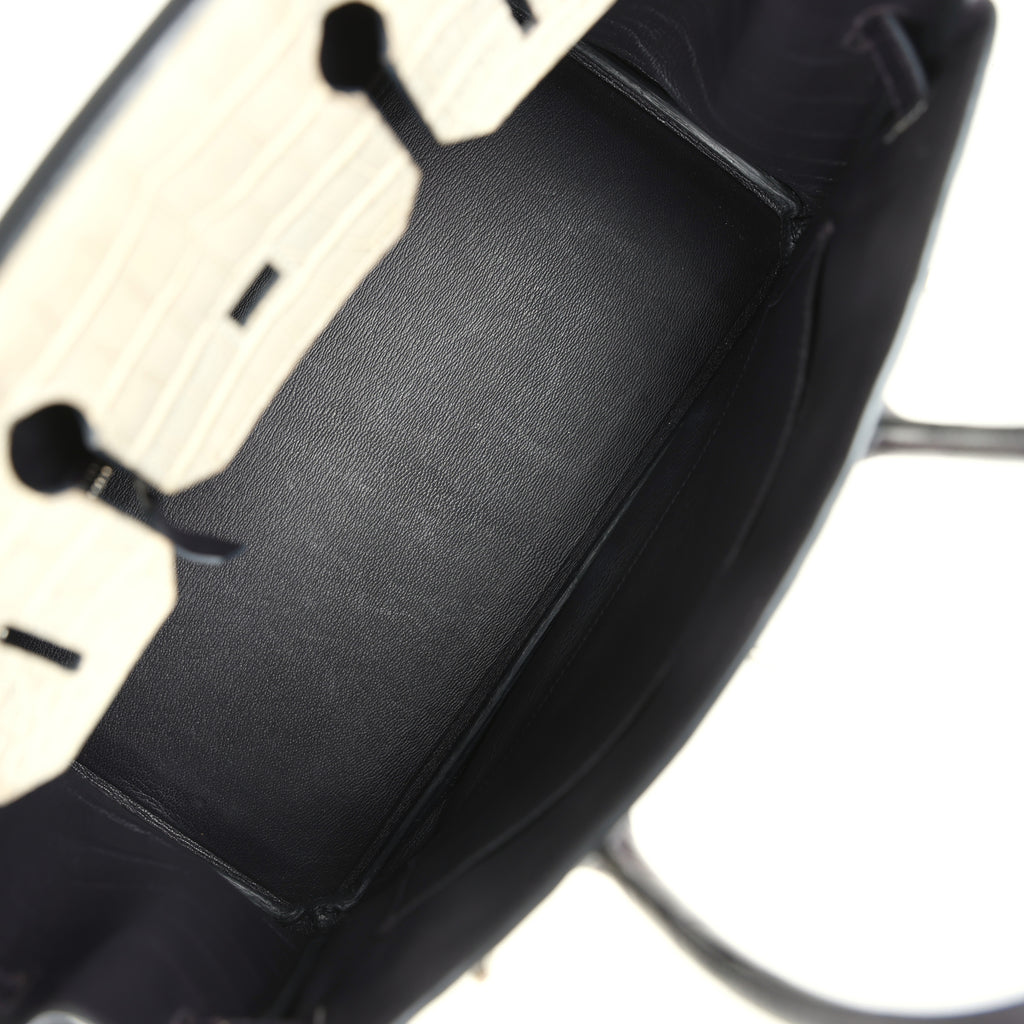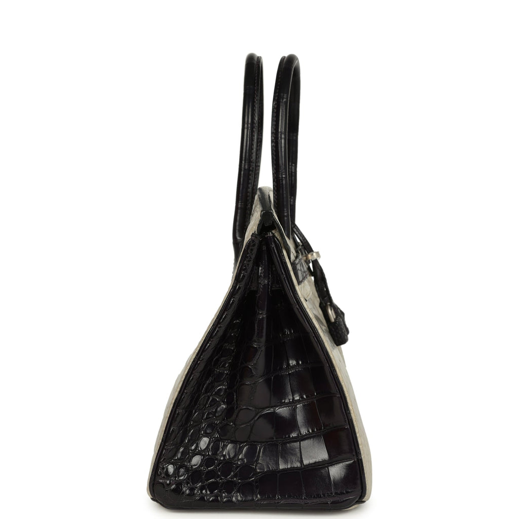 Pre-owned Hermes Special Order (HSS) Birkin 30 Gris Perle and Prunoir Matte Alligator Brushed Palladium Hardware