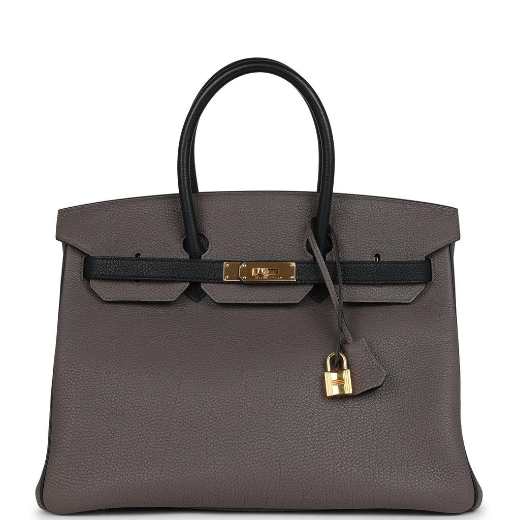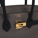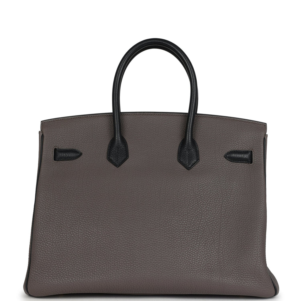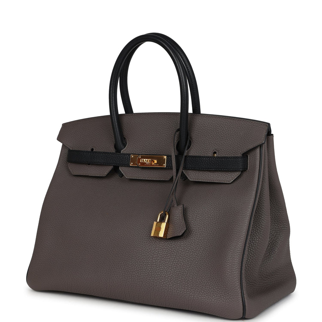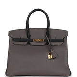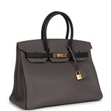 Pre-owned Hermes Special Order (HSS) Birkin 35 Etain and Black Togo Gold Hardware