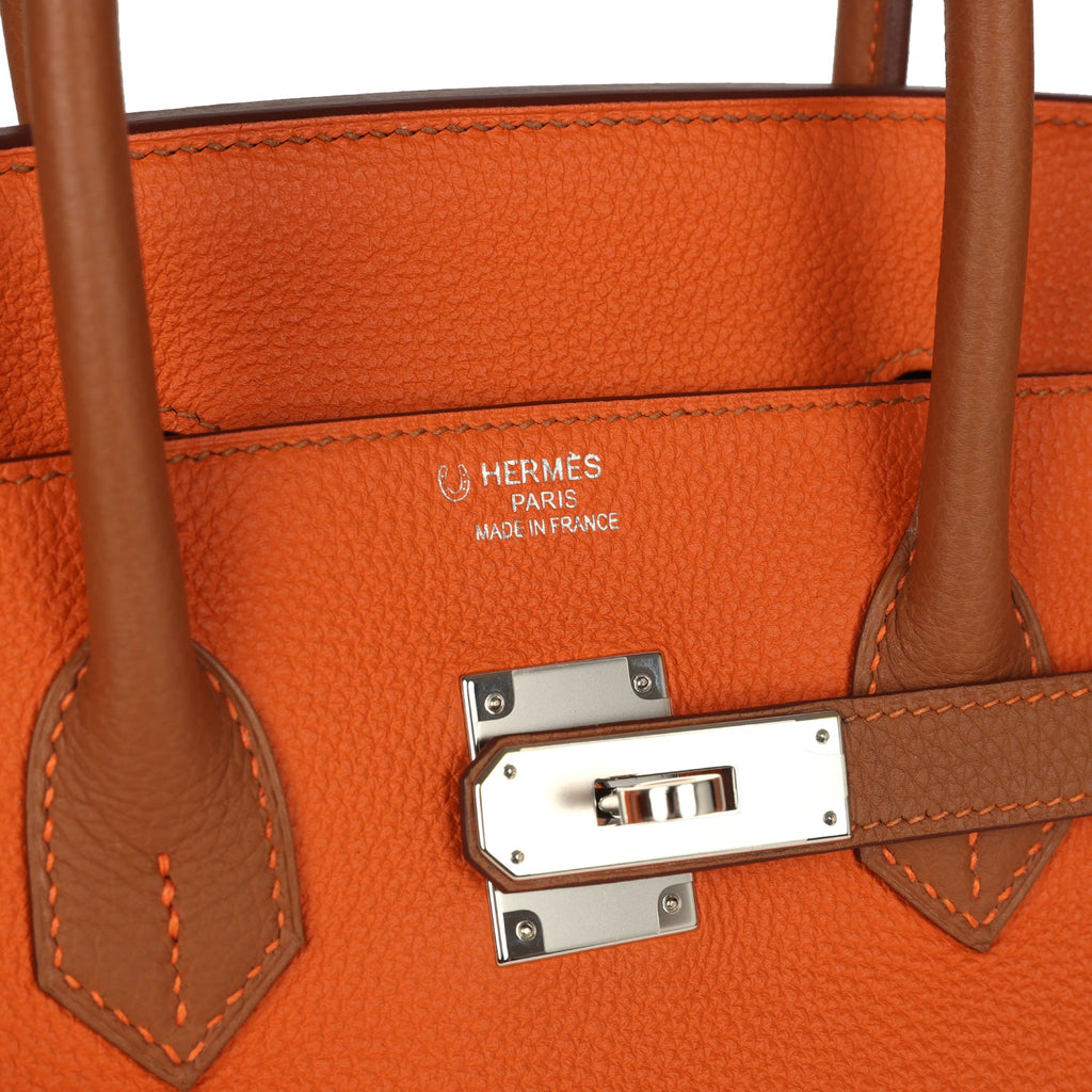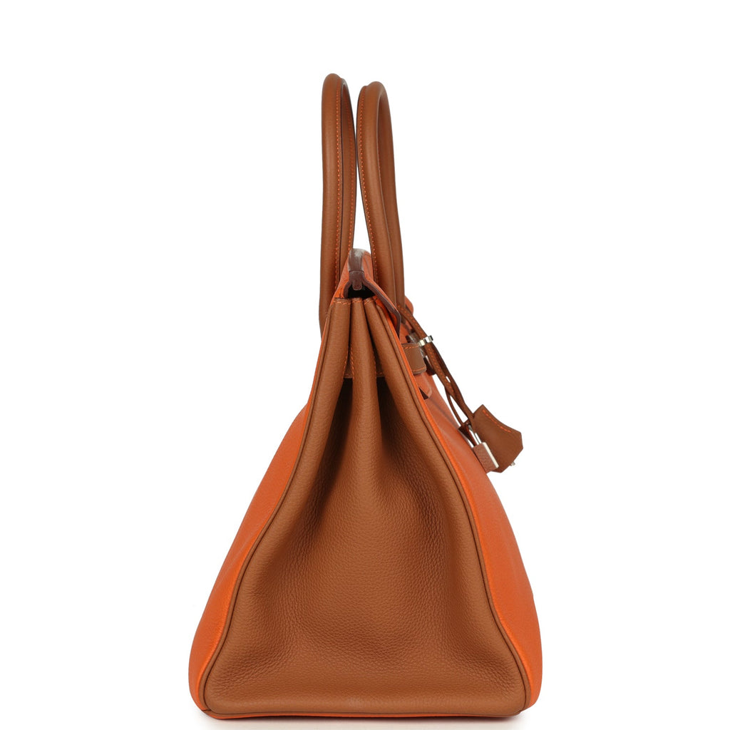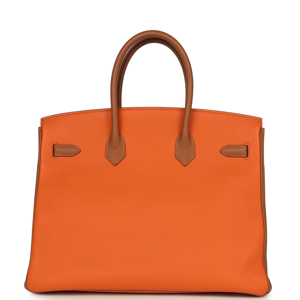 Pre-owned Hermes Special Order (HSS) Birkin 35 Feu and Gold Togo Palladium Hardware